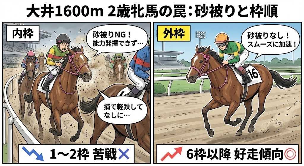 みなさん、いよいよ大晦日ですね。 1年の締めくくりとなる大井競馬場のメインレース、 「第49回 東京2歳優駿牝馬(SI)」が開催されます。 未来の南関女王候補たちが激突する一戦ですが、 このレース、実は古馬(大人の馬)のレースとは 狙い方が少し異なるので、今回はそこを重点的に解説していきます。 コースの罠:「内枠有利」は通用しない?舞台は大井1600m(内回り)。