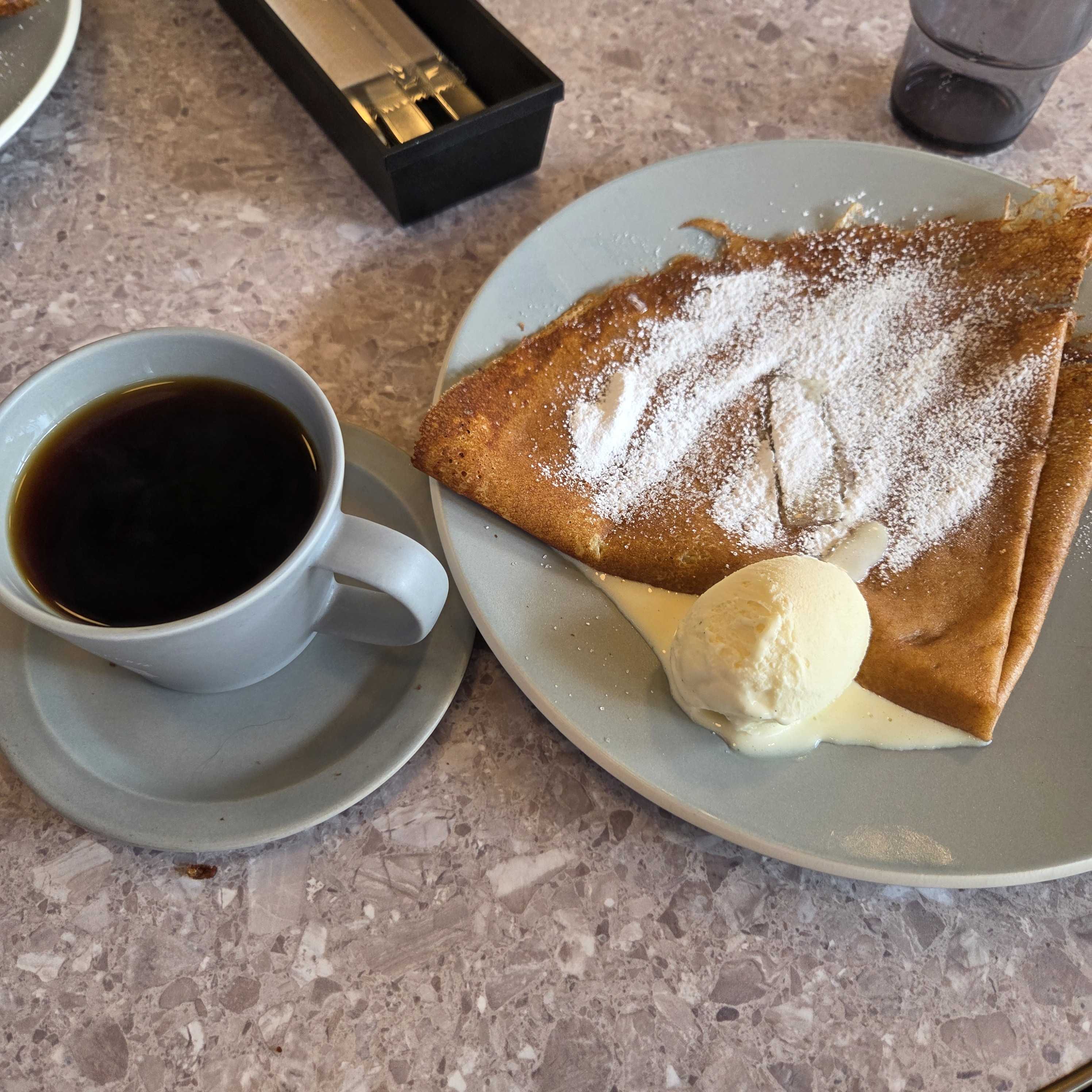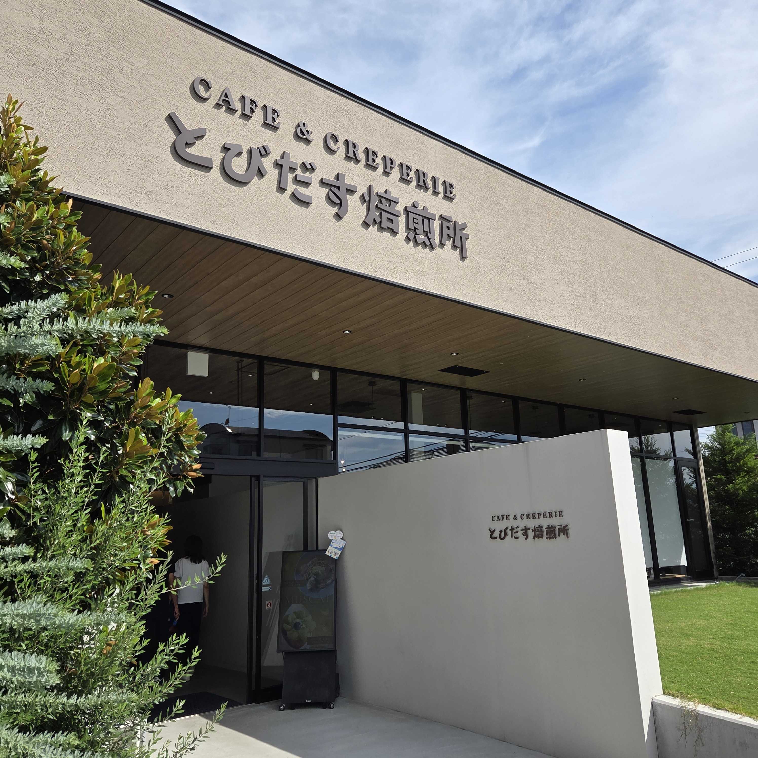 和歌山のラグビー観戦の前に何かいいものはないかと検索してて クレープが食べられるカフェを見つけた 人気がありそう店 カフェ&クレープリーとびだす焙煎所 大きなカフェで駐車場も70台?って書いてたかな めちゃめちゃ広い その駐車場がまあまあ埋まってて 席はあるのか不安 入口に行くとしばらく待ったけど早めには入れた 店自体は7:00オープンだったかな その時間からモーニングはやっているみたいで 朝10:00前に入店できたのでモーニングを注文 800円ほどだったかな クレープ単品でも1,000円近くしてたのでやっぱりモーニングはお得 店の中もいい感じ 茶色の札で席を取っていることを表している そしてそしてモーニングが届いた クレープをお店で食べるのなんて初めて 買い物帰りにキッチンカーとかお店のテイクアウトでしか食べたことなかった パリパリの記事がおいしい アイスクリームが乗ってて めちゃめちゃよかった 機会があったらぜひともまた行きたい場所だ