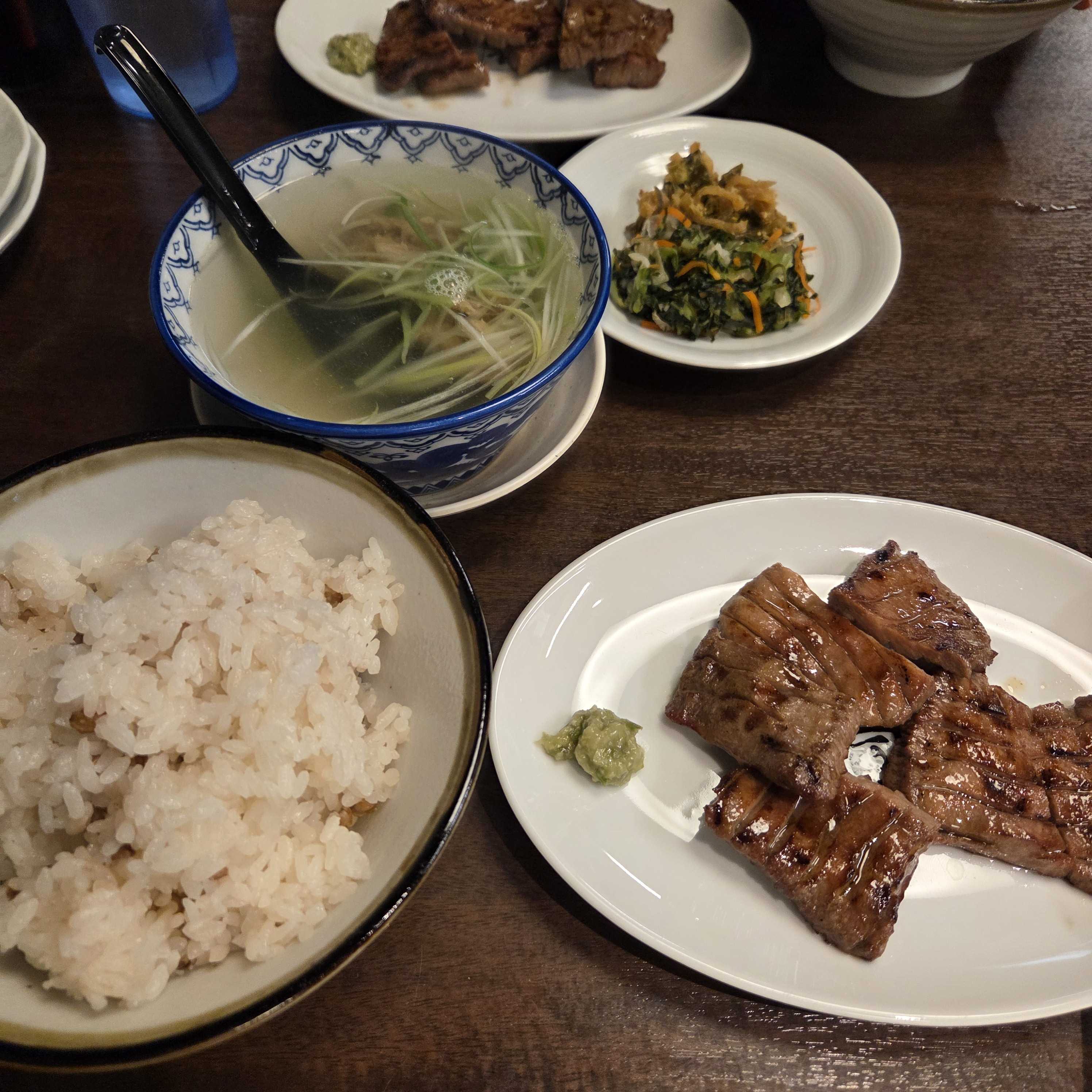 朝8時に伊丹空港✈️ そこから仙台へ お昼には仙台駅に到着 昼ごはん 牛タンは夜のお楽しみと思ってたけど そこら中で肉のいい匂いが 我慢できずに牛タン 牛タン定食 テールスープとお漬け物が添えられてる このテールスープがおいしい😍🎶 あっさりしながら味もしっかり そして牛タン 普通食べてる牛タンはもっと薄くてと思ってるのにまあまあ分厚い そしておいしい😋🍴💕 うますぎる ここまで牛タンがおいしいとは思わなかった でもこの定食およそ3,000円 それどうかな? 高い値段出すならおいしくて当たり前 もう少し安けりゃな そして夜 ここでも牛タン 定食 このテールスープとお漬け物は決まりなのかな 同じものがついてる これもまたおいしい😋🍴💕 たたきも頼んで たたきはポン酢がおいしいので当たり前 ここも牛タンはおいしすぎた でも約3,000円 仕方ないのか 一応仕事なんで明日は視察で歩き回る 牛タンパワーがそこまでもつかな😂😂