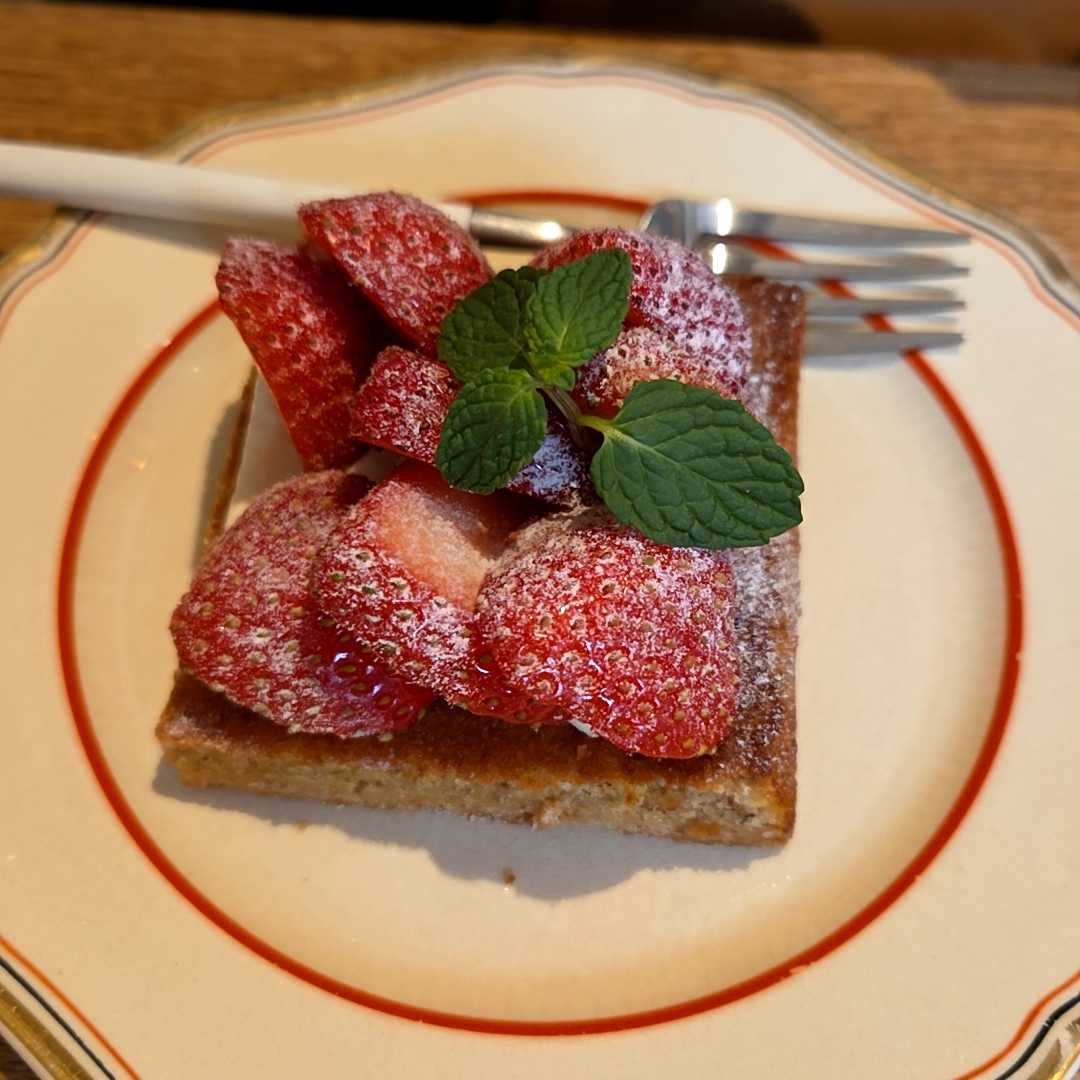文句なしにおいしい コーヒーも本格的でおいしい 洋梨のタルトの上に乗ってるのは生クリームっぽいけどヨーグルトっぽくてちょっと酸味があった 梨に合わせてるのかな イチゴもめちゃめちゃ甘い