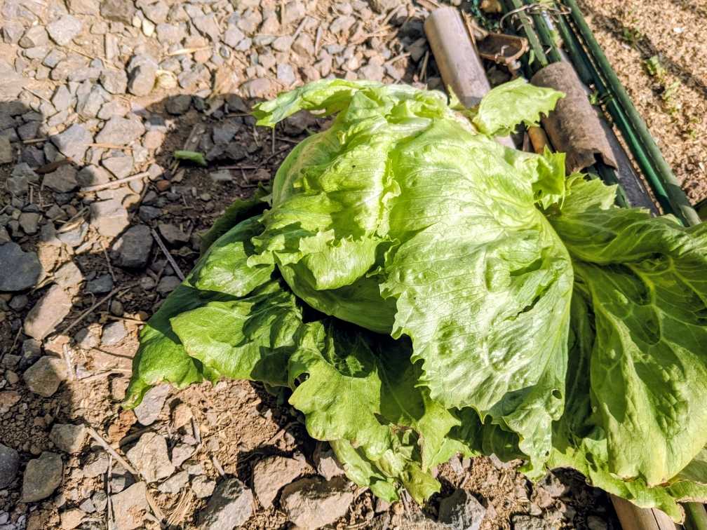 昨日の畑遊びは、今や恒例となった 「生ゴミ埋め込み」と野菜の収穫です畑に着く前に、竹をゲットして畑に持ち込んだグリーンの竹が、今回ゲットした物です☝️ ※もう、かなりの量が有りますが 竹は土中に挿すと、その内腐るので交換が必要になります ※出来る限り、ゲットして保存しておきます生ゴミ埋め込みを済ませて、資材置き場裏のカヤ(花が咲いて、既に種が出来ている) を切り取り廃棄しましたその後野菜の収穫をやって👇️ ☝️ブロッコリーと種からのサニーレタス👇️ ブロッコリーは、かなりデカイです種蒔きした(外畝の)サニーレタスは、もう3〜4株になりました取り終わったら、また、耕しが待ってます日付が変わる頃まで雨が降ってましたが道路も、なんとなく乾いているので早朝散歩🐾🚶に行ってました昨日の予報では雨予報だったので、家内は休ませました ※午後から散歩は、間違い無く出来ます