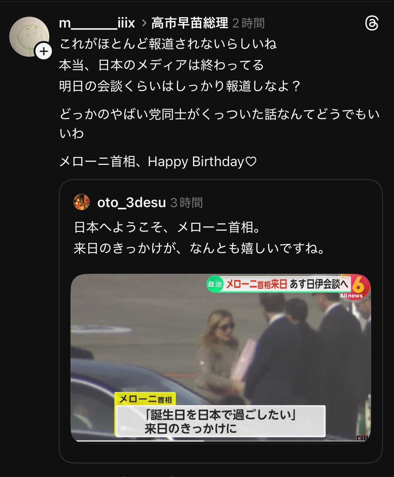 イタリアのメローニ首相が来日されていることをご存知ですか? これが信じられないほ…