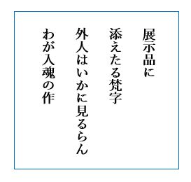 ♪ 展示品に添えたる梵字外人はいかに見るらんわが入魂の作
