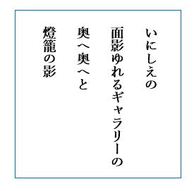 ♪ いにしえの面影ゆれるギャラリーの奥へ奥へと燈籠の影