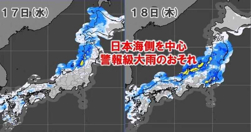 しかし全国的には前線が日本列島を通過するため広い範囲で雨となり、北陸など日本海側で大雨の恐れがあるらしい。