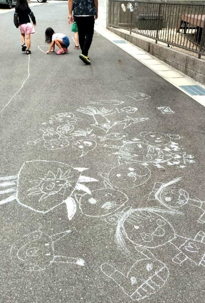 ♪ どこまでもつづくキャンバス白墨のアンパンマンらで埋められていく