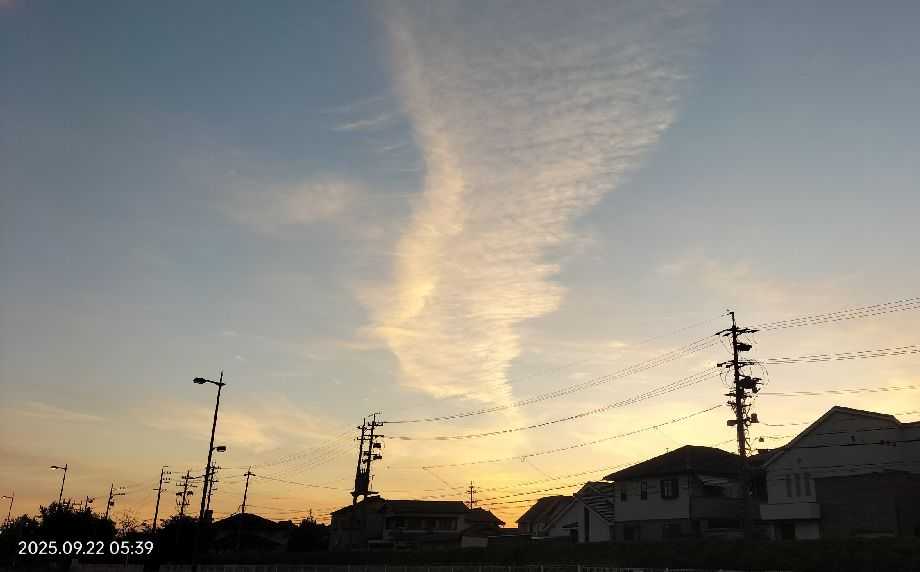 アランがカミさんの方で寝たので、夕べはぐっすり。5時に目覚めたので朝焼けの雲を撮りに。