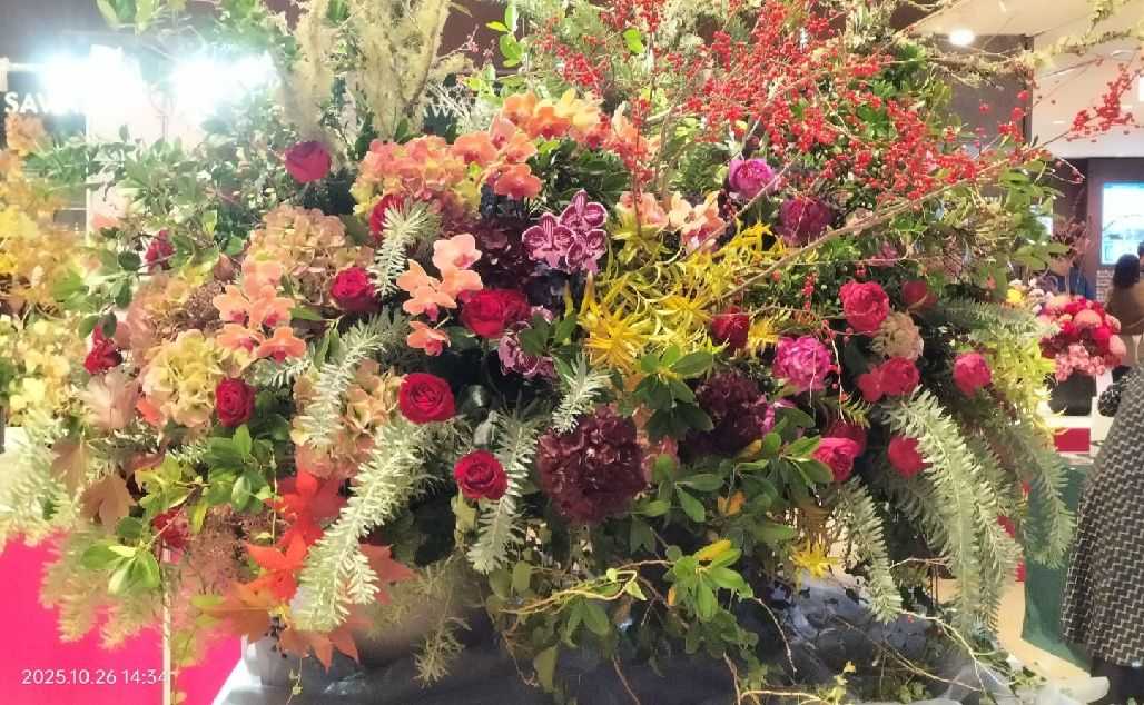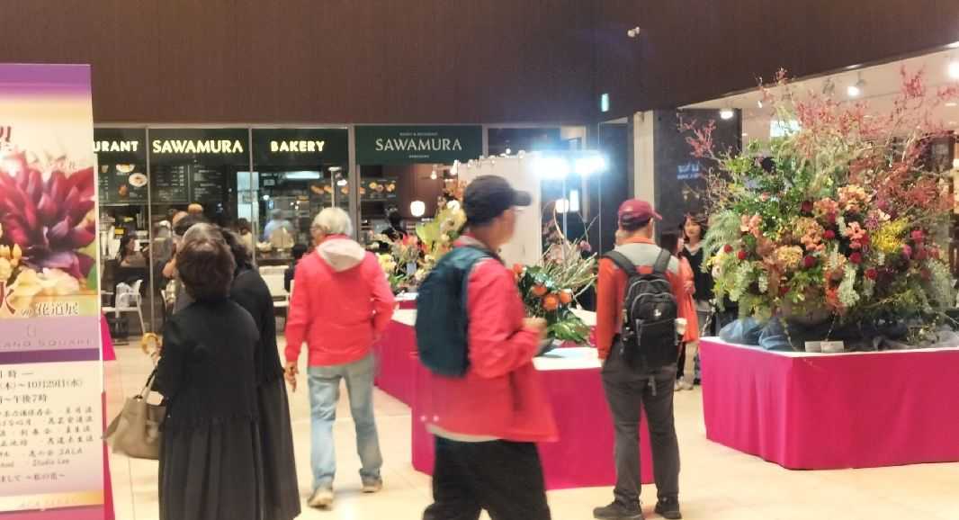 ミッドランドスクエア地下1階アトリウムで「秋の花道展」希望-ミッドランドに ~いつも花~ が29日まで開催中。短歌の仲間が参加している。ついでがあったので見てきた。