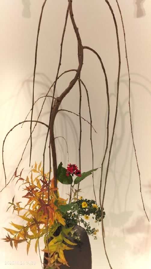 昨年の春は、30回記念ということで “伝統を踏襲した生け花から桜の枝を用いたフラワーデザインまで” 17の流派・団体が約60点の作品を、前・後期に分けて展示したらしい。