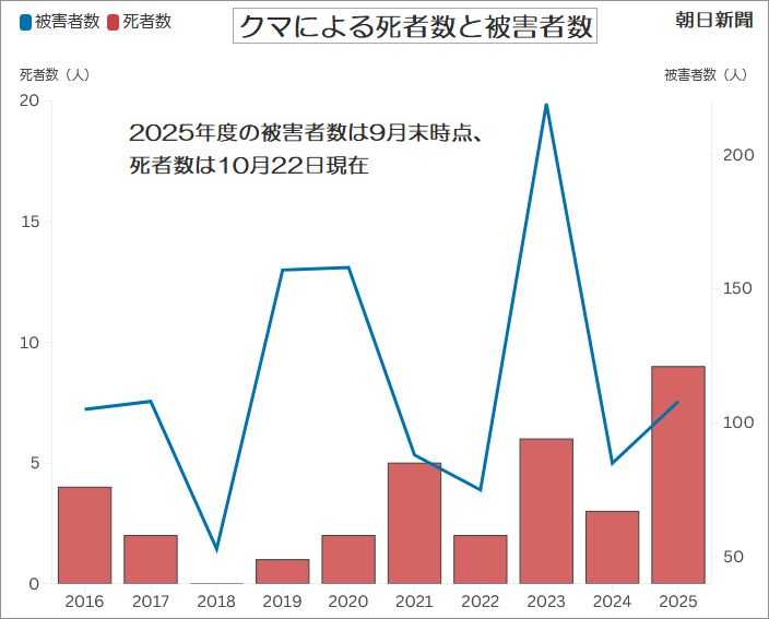 今年度の死者数は過去最多だった2023年度の6人をすでに上回り、人身被害も9月末時点で108人に達した。こちらも23年度の9月末時点の109人と同水準。その後も被害が相次いでいる。