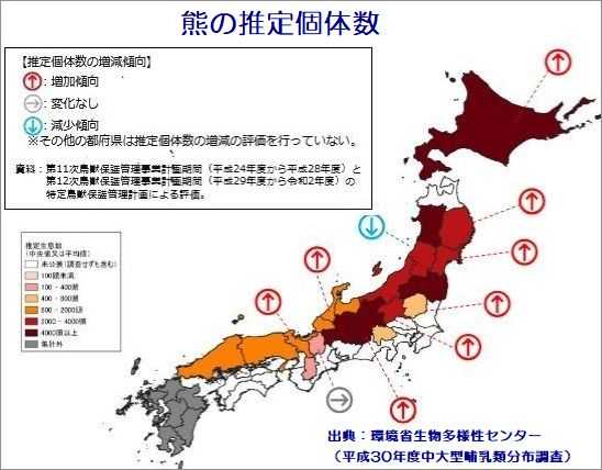 ●各都道府県による推定個体数は、増加傾向にある。