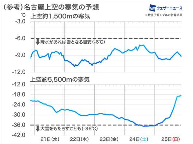24日は上空の温度がかなり低い。雪雲が有れば問題だがその心配はなさそうだが、27日に再び雪マークが・・。