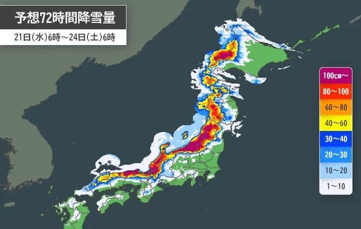 日本付近は冬型の気圧配置が続き、25日(日)頃にかけて上空には強い寒気が居座るらしい。雪国では累積の積雪量が心配されている。