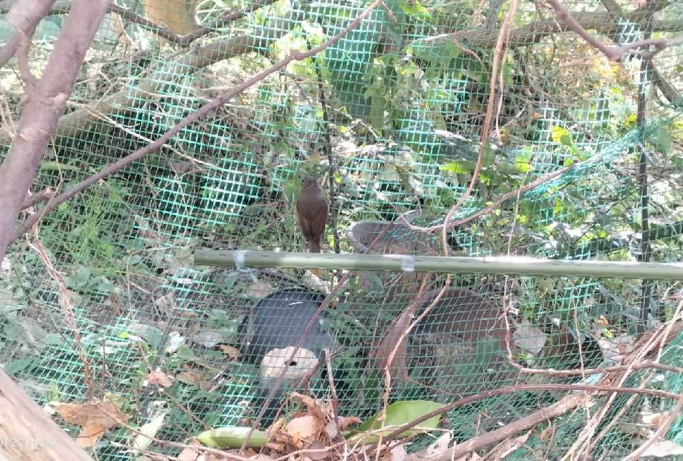 たまに、隣家の畑(木がこんもりと茂っている)でウグイスが啼いていることがあるので、ウグイスの幼鳥かもしれない。飛べそうなので、大してダメージは受けていないようだった。