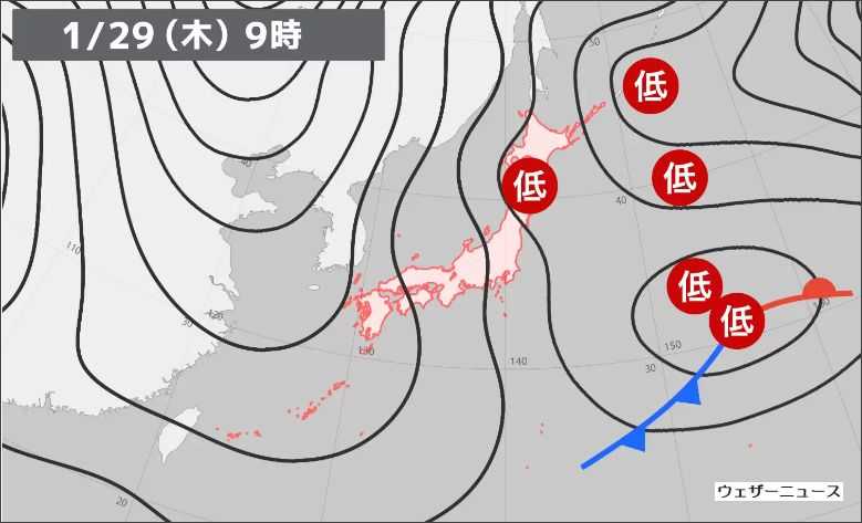 明日29日(木)から再び強い寒気が日本列島に流れ込み、日本海側を中心に警報級の大雪となる見込み。