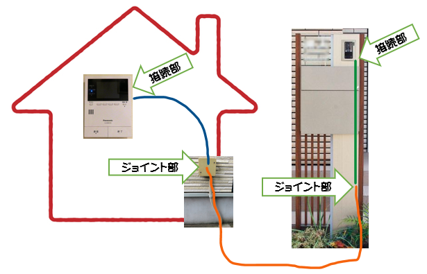 親機の表示は、一見何も問題なさそうなのですが・・・ ![]() モニターボタンを押すと「ドアフォンが接続されていません」というメッセージが表示されます。 ドアフォンを押しても「ぴんぽ~ん」の音がしません。 ![]() しか~し、何かの拍子でドアフォンが押されると「ぴんぽ~ん」と鳴ることもあります。 だたそのときに、親機にはカメラ画像が映らず、親機の通話ボタンを押すと「ドアフォンが接続されていません」というメッセージが表示されます。 当初、猛暑の中で配線の確認をするのをとても面倒に思った私は、「ドアフォンが接続されていません」というメッセージから、単にドアフォン(子機)が暑さで壊れたに違いないと自分に言い聞かせて、新しいテレビドアフォンを購入してしまっていたのでした。 ところが、新しいものに交換しても、全く状況は変わりませんでした。(がび~ん) ・・・という状態なので、仕方なく渋々猛暑の中、親機から子機までの配線を追ってみました。 それが下図です。 青色い線が、親機に接続されている屋内配線です。 オレンジ色の線が、屋内から門柱までの配線(地下)です。 緑色の線が子機に接続されている線です。 この緑色の線は、過去に門柱を交換したときに地下の配線の長さが足らなかったために工事の業者さんが継ぎ足した線だと思います。 ![]() これを踏まえて、テスターを使って各接続部とジョイント部を確認していきました。 安全第一を考えて、以下のような手順で行いました。 1.インターフォンに電源を供給しているブレーカーをOFFにして、本体のLEDが消えたことを確認。 2.本体を壁から外して、子機への配線(2本)を抜き、この2本をくっ付けてねじってショートします。 3.子機(ドアフォン)から、ケーブル(2本)を外し、テスターで抵抗を測ります。 このとき、子機からケーブルを外さずに抵抗を測ると、子機内部の回路にもテスターの電流が流れてしまい正しい抵抗値が測れませんので必ず外します。 今回の場合、0オーム(Ω)ではなく、1000Ω以上の抵抗があり、測定不可の無限大になったりしました。 ということで、配線に何らかの問題があることが判明しました。 4.青色の線とオレンジ色の線のジョイント部分で測定すると、0Ωで問題なし。 5.2でショートした配線を、ばらして離しました。 6.子機から外した配線を、ショートさせました。 7.青色の線とオレンジ色の線のジョイント部分で測定すると、0Ωで問題なし。(おや~?) 8.親機の配線(青色)で測ると、抵抗値は無限。 ・・・ということで、線そのものには問題がなく、青色の線とオレンジ色の線のジョイント部分に問題があると思われました。 そこで、青色の線とオレンジ色の線のジョイント部分の端で配線をカットして、皮を剥いて銅線を出しました。 9.親機の部分で配線をショートさせ、同時に子機の部分でも配線をショートさせました。 10.青色の線の抵抗を測定すると0Ω、オレンジ色+緑色の線の抵抗を測定すると0Ωでした。 青色の線とオレンジ色の線のジョイント部分で抵抗を持っていたことが判明しました。 新しい圧着端子で青色の線とオレンジ色の線を再接続すると、どこで測定しても抵抗値は0Ωとなりました。 テレビドアフォンには、なんら問題はありませんでした。 元のテレビドアフォンセットを接続しても、新しいテレビドアフォンセットを接続しても問題なく稼働します。 しか~し、新しいテレビドアフォンを購入してしまっていたので、新しいテレビドアフォンセットを使うことにしました。 元のテレビドアフォンセットは、予備といたします。 【新しい子機(ドアフォン)】 ![]() 【新しい親機】 ![]() でも・・・見た目にほとんど変化がありません。トホホな一日でありました。 お気に入りの記事を「いいね!」で応援しよう