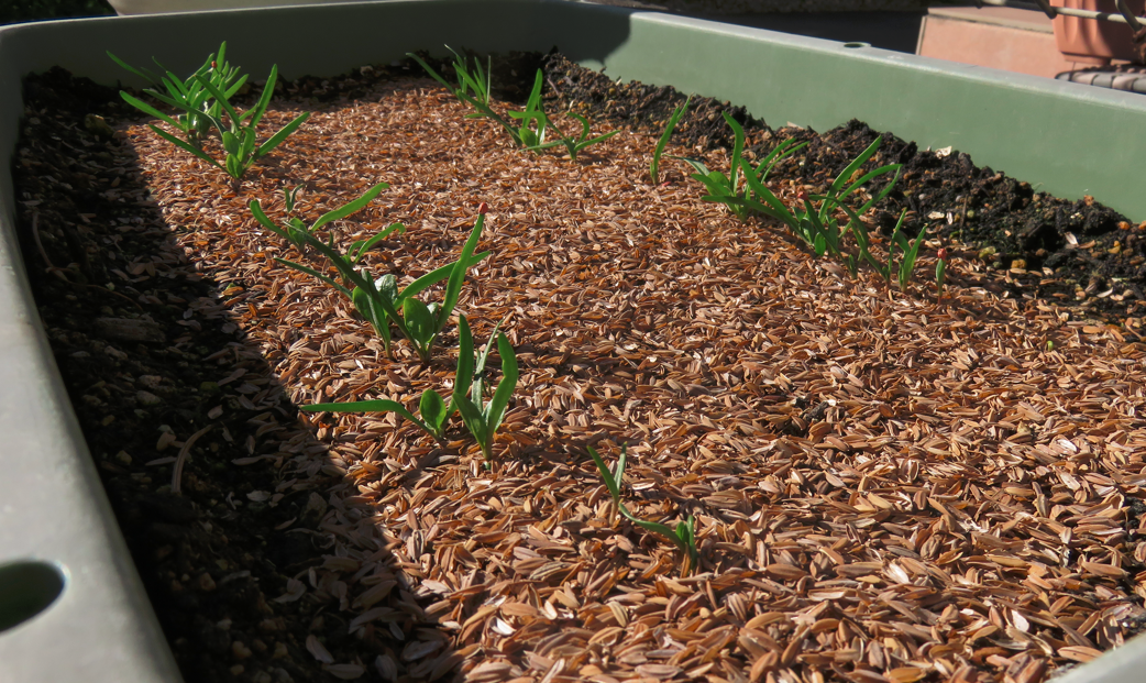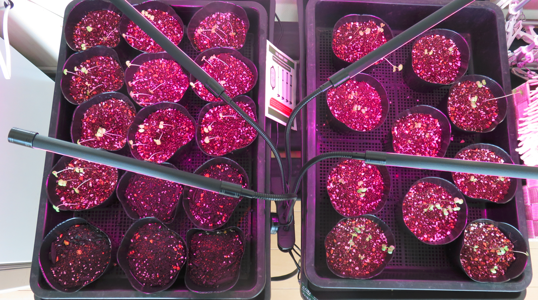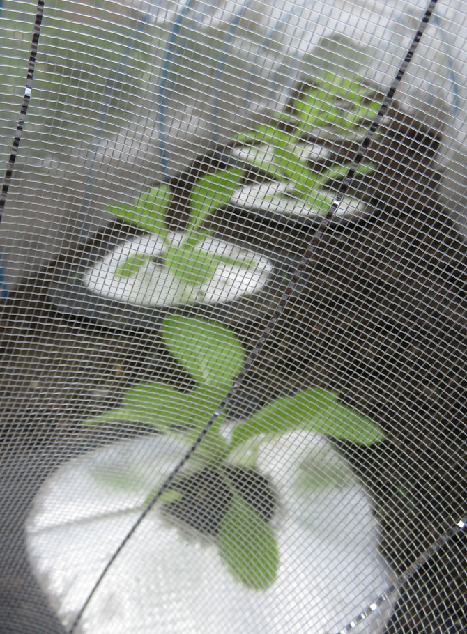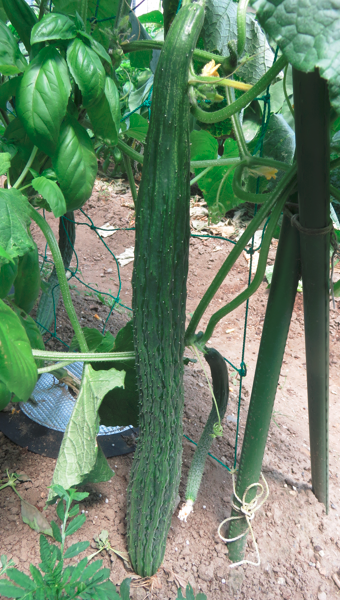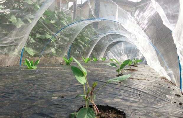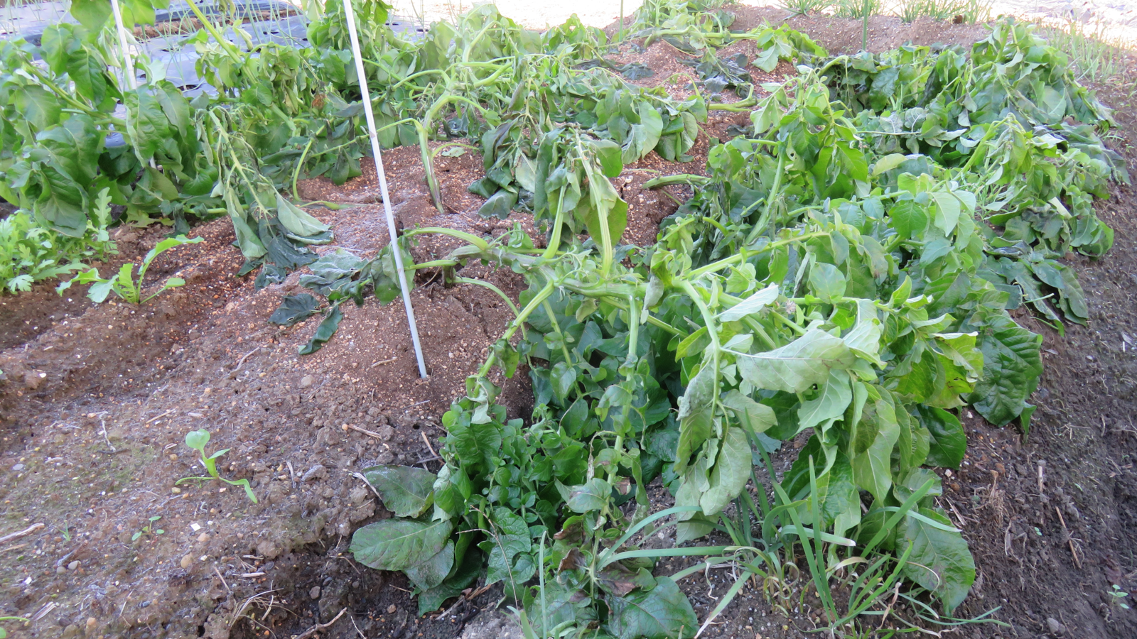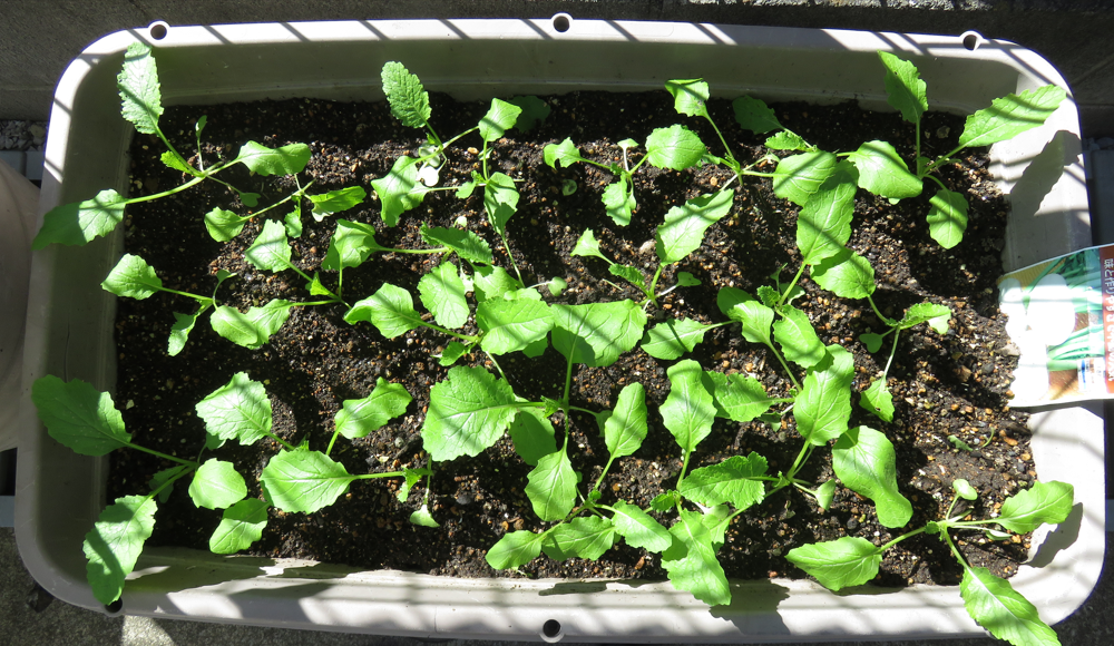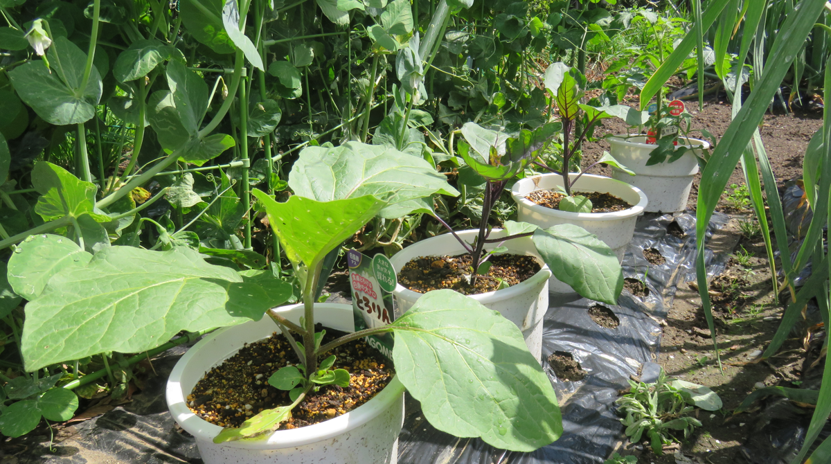 まずは、『白菜とキャベツの種をポットに蒔いたのですが・・・ (2)』で書いた、苗の結末は・・・徒長するばかりで、本葉が出てきませんでした。「やはり、外で日を当てないとダメなのか」と思い、半日蔭の場所にポットを出してみたのですが、全て萎れてしまいました。ということで、ポットに種を蒔き直しました。まだ、日差しが厳しく猛暑日が続いていたので、ポットは屋外の半日蔭の場所に置きました。すると、なんの問題もなく発芽して、本葉もちゃんと出てきてくれました。まだ、本葉が出てきたばかりで頼りない感じの苗ですが、猛暑日も終わったようですので畑に移植してみました。写真は、移植して4日目(10月3日午前)の状態です。写真の手前がキャベツで奥が白菜です。キャベツは、あまりに頼りない苗でしたので、2株のまま間引きせずに移植していました。今日見たところでは、うまくついたみたいなので1株に間引きをしておきました。白菜は、1株で移植しましたが、こちらも今のところ大丈夫そうです。こちらは、紫キャベツです。こちらも、かなり頼りない株だったのですが、移植してからの方が元気みたいです。ただ、1株だけ萎れてしまっていたので、その場所は、余っていた白菜の株の苗と交換しました。なんとも頼りない株ばかりなので「どうなることやら・・・」ですが、元気に育ってくれることを祈ります。それから・・・暑い間、全くと言っていいほど実をつけることのなかった長ナスなのですが、猛暑日が去り涼しくなってきたら、突然実を付け始めてくれました。なんだか、楽しみになってきました!!