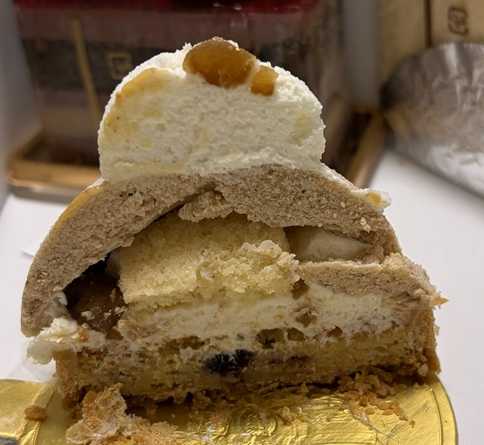 ![]() 上はマロンクリームで、ほんのりコニャックの香りを放っていました。 丸く絞られた生クリームの上は小さくマロングラッセが入っています。 ![]() マロンクリームの中にもマロングラッセが入っていて、ちょっとうれしい。 台はタルト、カシスが入っています。かなり酸味が効いています。 硬いクッキー地をの印象を和らげるかのような、ふわっとしたスポンジも入っています。 ![]() さらに、コクのあるマロンクリームには、なめらかさを加える生クリームを添えるといった、食感や味わいに作りとしてバランスをとりながら完成していて、高度なケーキという感じがしました。 オクトーブル大人買い、初回のケーキの記事はこちら!次の生ケーキの記事はこちら!チーズケーキとフレーズシトロンの記事はこちら!シュークリームの記事はこちら!チョコのミルフィーユ、マロンのケーキの記事はこちら!ミルフィーユ、マロニエ、(チョコミルフィーユ)の記事はこちら!翌日、タルト・フレーズ、キャラメルチョコ?、(ニューヨークチーズケーキ)の記事はこちら!シュークリームの記事はこちら!ケーキ、マロニエとマダムショコラの記事はこちら!シュークリームの記事はこちら!生ケーキ(マダムショコラとチョコのミルフィーユの記事はこちら!スワン型のシュークリームの記事はこちら!シャンティメロンとマンゴーフランボワーズの記事はこちら!プラリネ・ダマンド(とミュウミュウ)の記事はこちら!エクレア・ショコラの記事はこちら!マダムショコラの記事はこちら!マロニエの記事はこちら!ミルフィーユ(チョコ)の記事はこちら!シュークリームの記事はこちら!パリブレストの記事はこちら! お気に入りの記事を「いいね!」で応援しよう