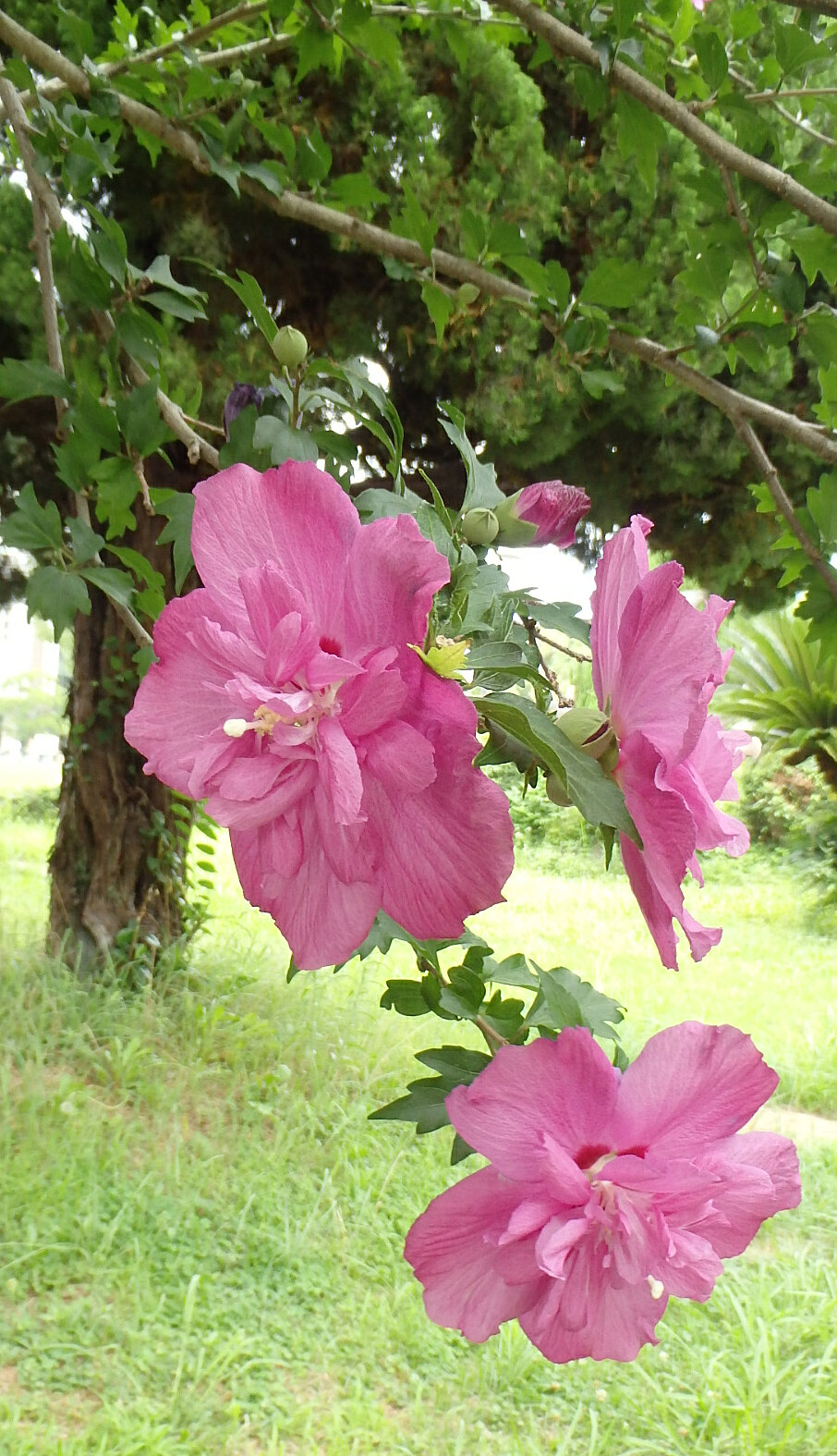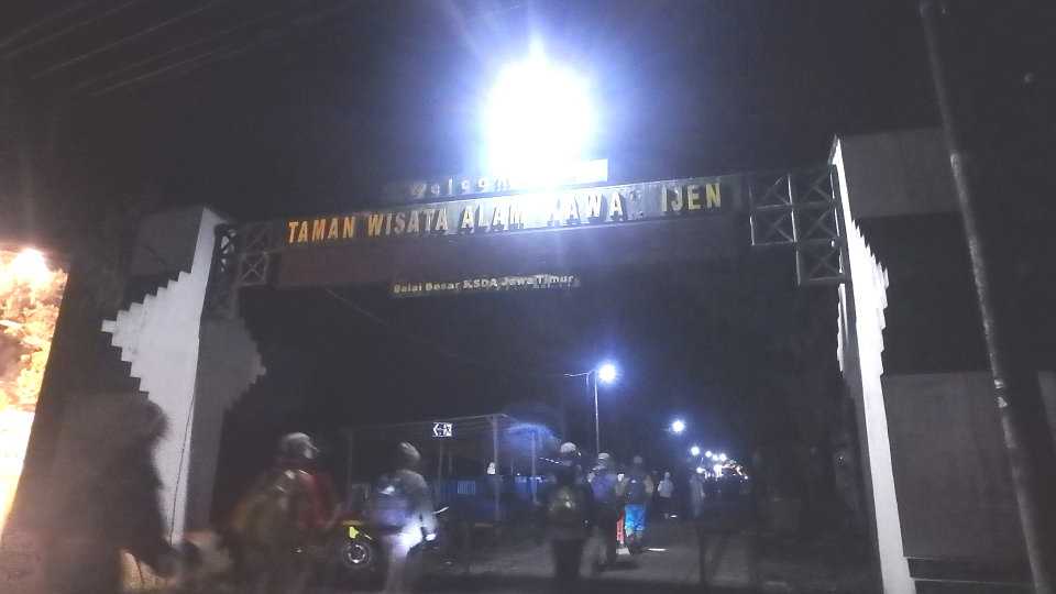 昨日の続き。イジェン山山麓のホテルで仮眠をとったあと、イジェン山火口の青い炎を見るために、真夜中に登山を開始しました。旅行社の案内は以下の通り。深夜ホテルを出発。四輪駆動車にて登山口(約1,900m)へ。ここから登山開始。イジェン山山頂付近(約2,300m)へ(約2時間)。そこから、クレーター内(約2,100m)へと下ります(約30分)。漆黒の闇の中、硫黄ガスが神秘的な青い光を放つブルー・ファイヤーを見学。装備としては、通常の登山スタイルに加えて、ヘルメット、ヘッドランプ、防毒マスクが貸し出されました。(ゴーグルも必要と案内されていましたが、使わずに済みました。)じっさいには夜中の02時30分頃に登山口ゲートを通過しましたが、あたりが明るくなると青い炎が見えなくなるため、5時15分頃までに火口に到着する必要がありました。しかし、出発時にトイレが混んでいたことや高齢者が多かったことなどから、スピードにバラツキがあり、最終的には、時間に間に合うように早足で火口に向かうグループ間に合わないことを承知でゆっくり歩くグループ火口まで下りるのを断念し、火口壁から日の出を鑑賞するグループに分かれて行動することになりました。私自身は日頃、半田山植物園ウォーキングで鍛えていたこともあって、1.のグループとして一番乗りしましたが、すでに空が白みかけており、青い炎がしっかり見えたのはほんの5分間程度となりました。それでも間に合ってよかったよかった。【登山口ゲート。真夜中の02時半頃に通過】【火口内の青い炎。05時15分に撮影】【05時21分には周囲が明るくなり、青い炎は見えづらくなった】