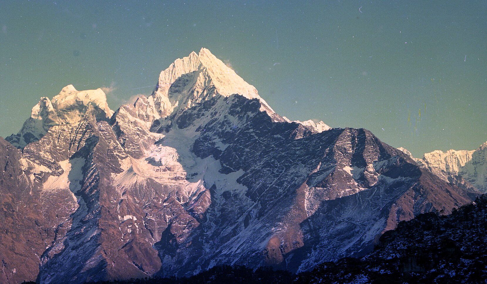 ネパールトレッキング・エヴェレストコースは名前の通り肉眼でエヴェレストを眺めることを一番の目的としていますが、その途中には個性的な名峰がそびえています。写真は、その中でも特に目をひいたアマ・ダブラム、カンテガ、タムセルクです。雪はあまりかぶっていませんが、他にクンビラ、コンデなどがあり、一番奥まで行けばエヴェレストの娘、プモリを見上げることができます。