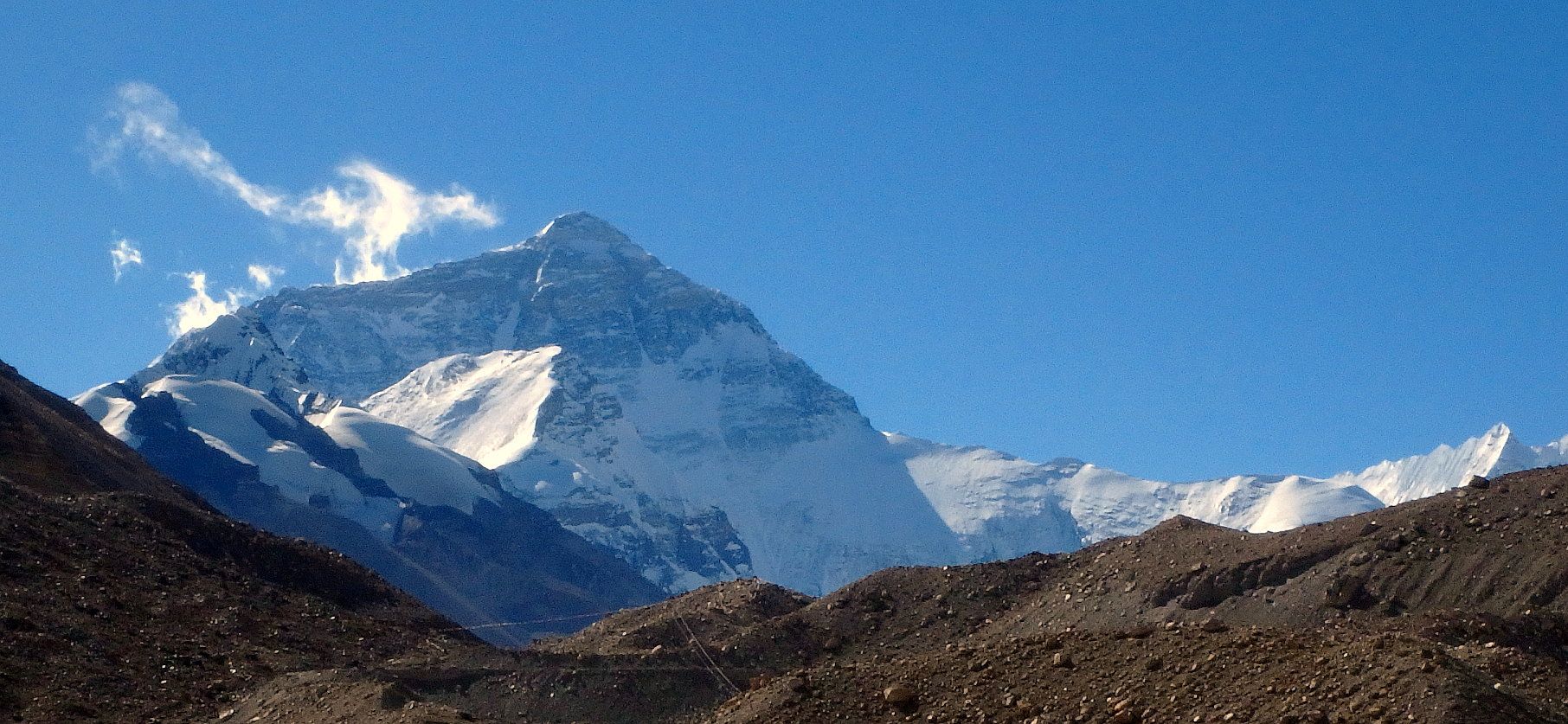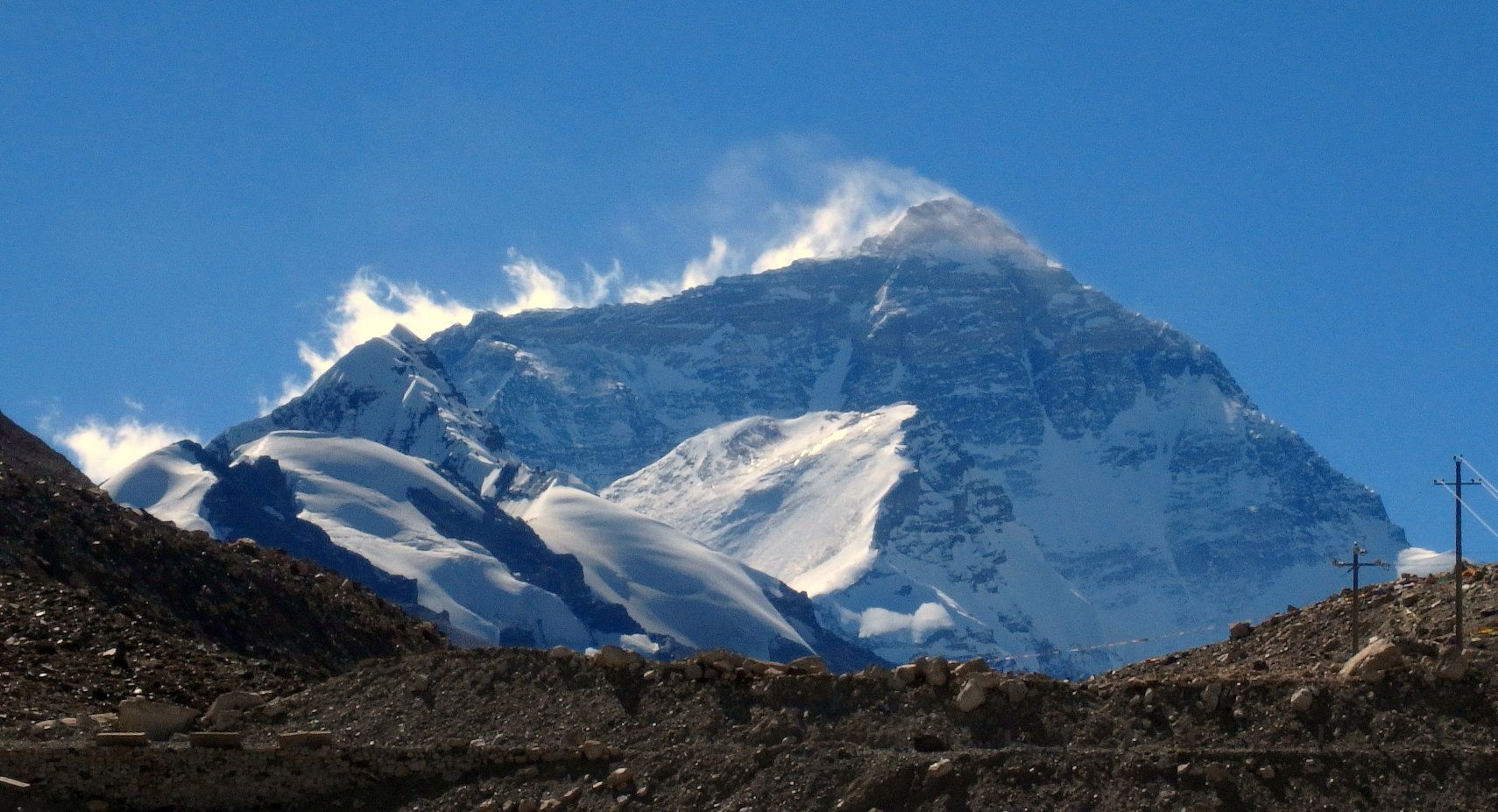 本年もよろしくお願い申し上げます。 さて、昨年11月からチベットの旅行記を連載してまいりましたが、丁度うまい具合に、2019年の元日に、この旅行の最大のハイライト、チョモランマ・ベースキャンプ到着の記事と写真を載せる巡り合わせとなりました。 今年の年賀状(妻と連名で差し出す親戚・知人あてのみ印刷)の絵柄もチョモランマの写真を載せておりますので、元日であるからといって特に新年の決意などを述べることはせず、昨年からの続きで旅行記の連載を続けることにしたいと思います。 チョモランマのベースキャンプは、中尼公路から分岐して南へ100キロ程走ったところにあります。標高は5200m前後、チョモランマ頂上までは水平距離でまだ36.5kmあるそうです。 ベースキャンプ付近のビューポイントは、チョモランマに遠いほう(標高の低いほう)から、少なくとも3か所ありました。