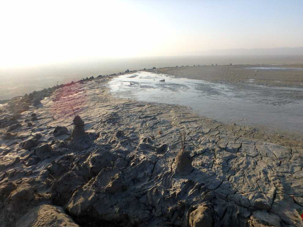 2月24日に続いて、2023年11月に訪れたパキスタン南西地域のアルバムです。 チャンドラグブ泥火山の第二火山、第三火山に続いて、いよいよ、一番標高の高い第一火山に登りました。 第一火山は今も活動中で、時おり泥を吹き上げていました。火口は泥であふれており、一部は火口の外に流れ出していました。その積み重ねで成層火山のような山容になったのでしょう。 【詳細マップの再掲】 ![]() 【北側から見た第一火山再掲。標高はわずか90mだが、周りが平原のため高く見える】 ![]() 【第一火山の「火口」】 ![]() (ヒンドゥ教の聖地でもあるため、線香が立てられている) ![]() ![]() ![]() 【泥を吹き上げた瞬間。動画撮影から切り取り】 ![]() ![]() ![]() 【山頂で夕日を待つ。私たちのグループ(護衛の武装警官を含む)以外には誰もいなかった。】 ![]() ![]() ![]() 【山の影】 ![]() お気に入りの記事を「いいね!」で応援しよう