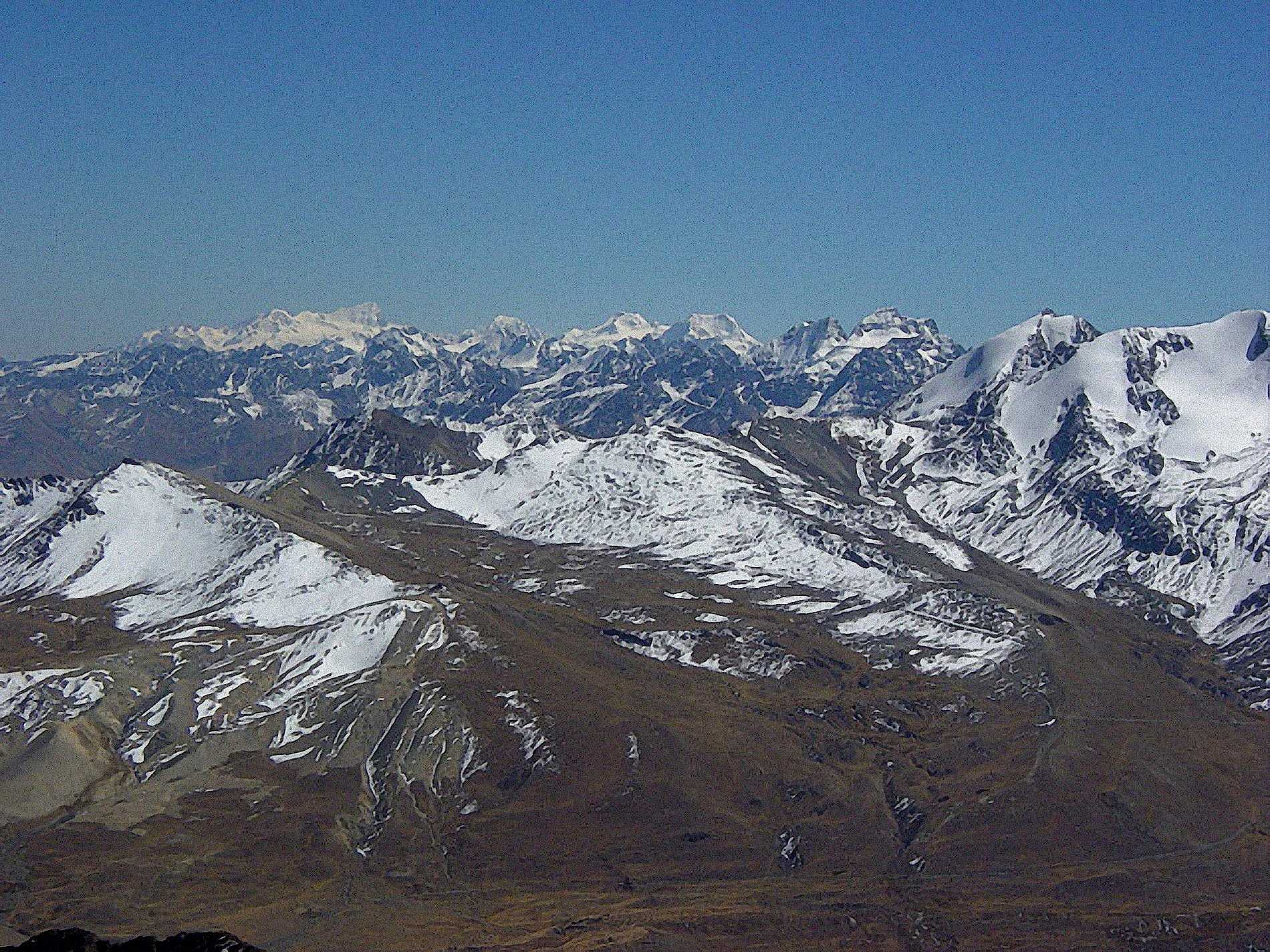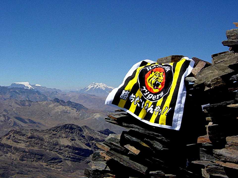 さて、2003年と言えば、星野監督のもと阪神タイガースが18年ぶりのリーグ優勝を飾った年でもありました。 当時阪神ファンだった私はチャカルタヤ峰の頂上で優勝祈願。もしかすると世界最高所での応援だったかもしれません。 興味深いことに、チャカルタヤの駐車場には虎のマークをつけたバスが駐まっていました。 帰りがけにはワイナポトシを背景にした墓地をみかけました。世界最高所の墓地かもしれません。 【チベットにも同じ標高に寺院がありますが(例えばこちら)、鳥葬にするため墓地は無かったと思います)。 【マップ再掲】 ![]() 【ワイナポトシ方面のパノラマ】 ![]() 【コンドリリ峰方面だが、どれが山頂なのか不明。画像を右クリックすれば拡大できます。】 ![]() 【イリマニ峰(右)と残雪】 ![]() 【世界最高所?での阪神タイガース応援】 ![]() ![]() (なぜか虎マークをつけたバスに遭遇) ![]() ![]() 【世界最高所?の墓地】 ![]() お気に入りの記事を「いいね!」で応援しよう