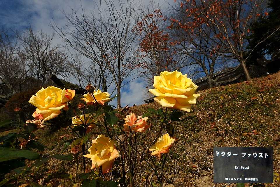 半田山植物園には小規模のバラ園があります。秋のバラと言えば10月~11月が見頃かと思いますが,今年は10月より11月、11月より12月、というように寒くなればなるほど花の数が増えているように思います。