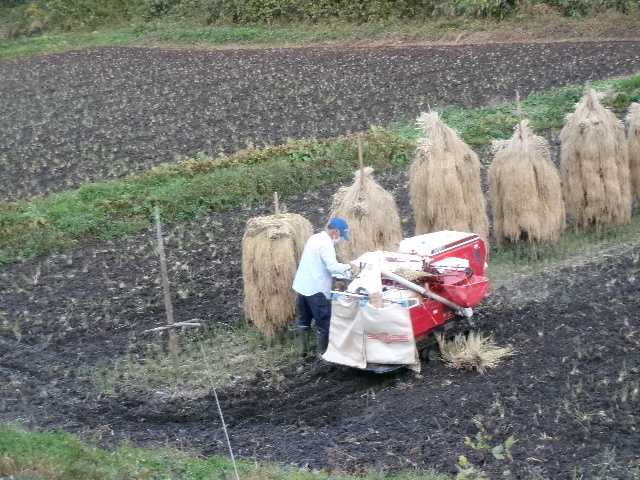 連休明け 朝、外はアイスプラント!自然の織り成す芸術だ!ちなみにアイスプラントとは凍った様に見える野菜で、昨今お店でも見かける様になりました そんなまるでアイスプラント状態の世界が広がっている朝 何とも神秘的… 秋の今頃にしか見られない光景かも!更にこの先秋が過ぎ駆け足で冬が来る 冷え込みが厳しくなると氷!そう氷の世界がやって来るのです 氷の世界は静寂!の伴う緊張した世界 氷の世界のその前に雪が降ると又それは違う銀世界でまったりとした空間が訪れる これは私の感覚なのか?皆それぞれに違う季節感が有るのだろうな… 今年はどんな冬になるのか…? 太陽の上昇と共に日の当たる西側辺りから凍った葉が解凍されて行く 秋は紅葉 昨年はここらは紅葉は今一だった 娘情報では今年は紅葉が綺麗 今頃は猪苗代湖辺りが紅葉シーズンらしい 毎年娘情報で行って見ても農作業などで1~2週間ズレて結局散っていました~って事ばかり… 我が家はず~っとそうでした たまたま福島駅伝の時に紅葉真っ盛り!って事が一度だけあったな~… 家族で出かける時は殆どが雨の日の我が家、雨で何も見えない有料道路程何か虚しい物は無い… 初めて家族で日光に行った時も雨、華厳の滝が全く見えず音だけが聞こえていました~何て事もあった ま、我が家は雨の日位しか出かけられないとと~ちゃんが明言しているのだから仕方ない… 家の周りも秋めいて来た そんな中、やっと脱穀開始! 先週脱穀だと意気込んだ日は予報には全くない大雨!その後雨が続き稲の乾きが今一だった 稲刈りが早かった今年気を揉む事も無いと思っていたがやはり之結果… 稲の湿度を計り早速脱穀開始!雨が降らなければこのまま脱穀の日々が続きます 祈る様です