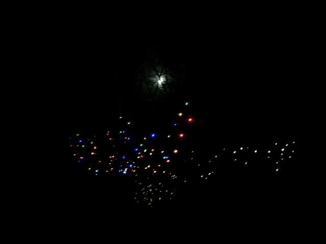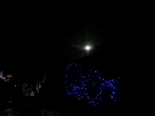 夜空が明るい 東の空に大きな月!そうか、今月も満月になったか…早いな…ついこの前三日月だったのに・・・12月と言う事は今年最後の満月 12月の満月「コールドムーン」というのだそうだ それにしても大きい月だ… 月が大きいというのはどういう意味?近い何て事あるのか?え?「ただの目の錯覚!?」だそうです…ホント!?こんなに大きく見えるのに??? クマが狂暴になったというのも昔からそうであって急に狂暴になった何て勝手な思い込み錯覚じゃない?と言われた…同じ事ではないけど… 何かな~… さて、今年も天栄役場前の芝生広場にはボランテァさん達によるイルミネーションが飾られた もう我が家に中学生は居なく中々見に行く機会も無いのが残念 夜は夕方からのパンの仕込みに忙しいし… そんな思いもあった このコールドムーンの夜に我が家に異変!灯りが灯った日! この満月の空の下、我が家の庭にイルミネーションが!まさか!の山の中!そう、あのワゴンセールのお買い得品がどんどん値下げ!?あらら…誰も買う人いないのかしら?しかもソーラーイルミ!と~ちゃんもこれなら文句言わないだろうな…と、お店の人の為に?イヤ、私の遊び心が刺激された!満面の笑みで「へへへ買っちゃった!」と帰宅後と~ちゃんの前で広げる そう言えば、もう何十年も昔、会社の大きな事務所にクリスマスツリーを飾ったら綺麗だろうなと思った 係長に言うと遊び心満載の係長がokサイン!早速、その頃まだ結婚前の彼氏と言う今のと~ちゃんにモミの木をお願いした! 杉の木になったが相当大きな木が会社に届いた!早速、係長と飾り付け!その年の会社の忘年会の賑やかだった事と言ったら!その後本部から来た部長だか専務だかにこっぴどくお叱りを受けていた係長がいたっけ…でも、今回だけは皆女子社員が物凄く楽しんでいたと言う事で許してくれたとか言う後日談エピソードを聞いた