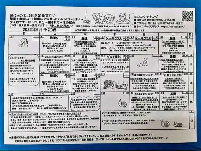 ヒロコクッキング!5月22(月)です✨ 暑さの中のヒロコです~初クーラー入れました💦!今週火曜惣菜クラス,水曜ベーシックはドライカレー,金曜親子英語,土曜は2時クラス~ドライカレーの基礎は6/3です以上 よろしくお願いします ◎5月23(火)新作惣菜 11:30~6:30~ 新じゃがと牛肉のピリ辛炒め…やば旨~です かつお イタリア風香草たたき 桜エビ彩たまごスープ 梅味水餃子 ※リクエスト入れてます~ あなたの希望メニュー教えて~◎5月24(水)ベーシック基礎11:30~ 6:30~ 6/3(土)11:30~実施です✨ 〝切って~切って挑戦!” 我が家風ドライカレー スパニッシュオムレツ お豆腐ドレッシングのサラダ レモンとシナモン2種のラスク ☆リクエスト♪です 基本のレシピ 大人にも好評です✨✨ ◎5月26(金)親子で英語クッキング 5:30~ ☆3才~小学低1~2人と大人で参加 只今,予約登録受付中 大人気~ポークチャップ あっさりで美味ヨーグルトポテトサラダ 新玉葱炊き込みご飯 いちごのミルフィーユパイ ◎5月27(土)土曜の2時お手軽クッキングで~す♪ 炭酸水揚げフリット 鯵しそ巻きや野菜いろいろ 大分名物~鶏めし 混ぜるだけ一品お豆腐ムース キャベツと卵のお味噌汁 抹茶とおからのケーキ風 ※リクエスト入れてます~ あなたも教えて下さいね 6月日程表 HPにアップしていますhirokocs.com/schedule.html 基礎クラスの動画 毎週今は アップしてもらっています https://www.tiktok.com/@oto20200416 ただ 見るだけもできます~ 共にご利用ください お聞きして個人授業します!今年もよろしく~お付き合いください。 昼 夜 ソロ活予約できます 5月は5/25(木)30~31(火水)早めに日にちだけでも予約ください 6月のソロ活おすすめは、6/16(金)、22(木)27、28,29(火水木)お早めにご予約ください! 時間等ご相談 お声かけて下さい♪ プライベートレッスンのソロ活 貴方だけのマンツーマンで必ずできるお一人様クラス(複数OK) 1時間パン,デコ花パン,焼きカレーパン,ウールロールパン,豚まん,シフォンケーキが焼けるまで~ オムレツ&だし巻き魚がおろし等ご希望で挑戦お手伝いします!時間予約ご相談ください ヒロコクッキングスクール ■京都府福知山市駅前町377タカハシビル2F ■ご予約・お問い合わせは0773-23-6162 まで ■レシピとひと口健康ブログhttps://ameblo.jp/hirokocs-recipi ■ホームページアドレスhttp://hirokocs.com/ ■インスタhttps://www.instagram.com/hirokocookinguschool/ ■メールはinfo@hirokocs.com