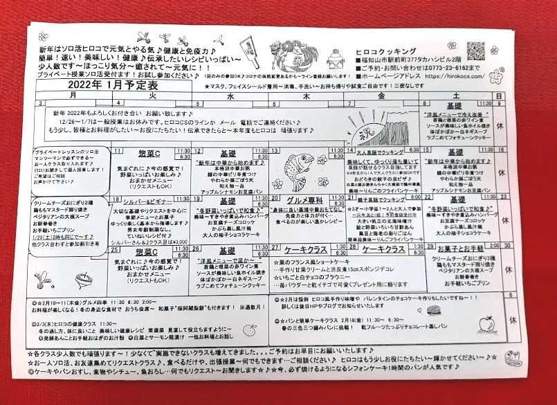 ヒロコクッキング!12月24 Xmasです!!ヒロコで1人います。あと少し~頑張ります♪ かなり遅くなりましたが~1月予定表HPでアップしています。 ヒロコでも配布いたしております~