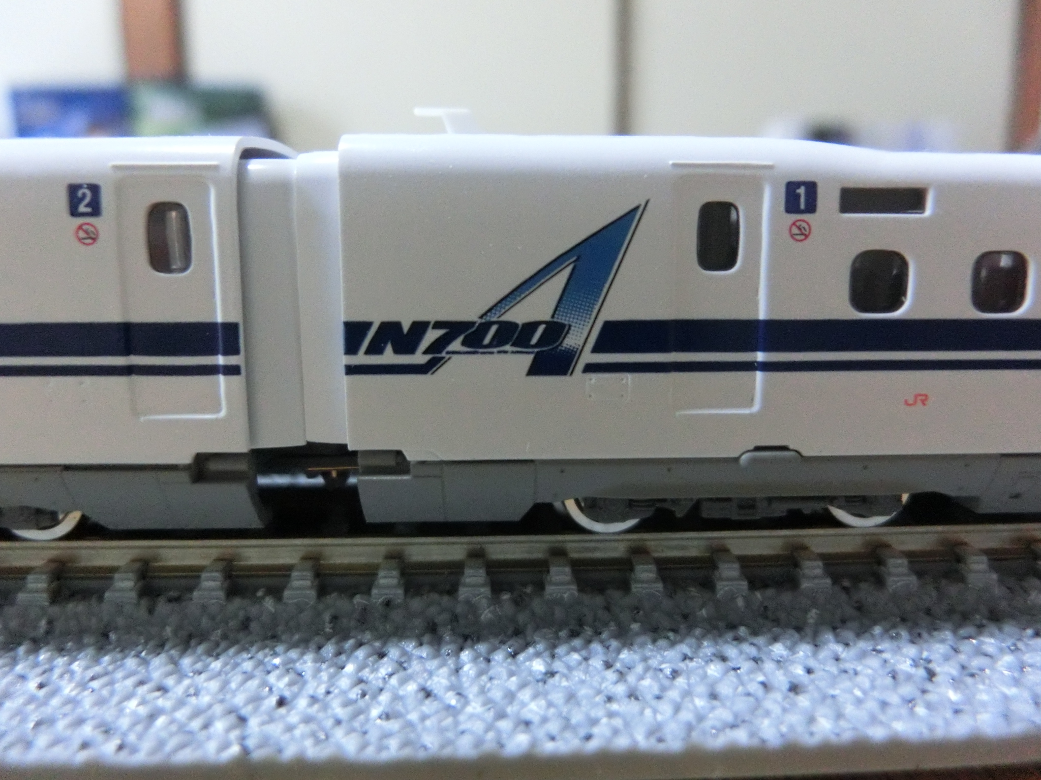 2013年2月からN700系の改良型、通称N700Aが投入される。外観で大きく変わっているところはあまりないが、側面の大きなAのロゴや、床下の通気口の形状で判別は可能。主だった改良点は、定速走行装置の搭載と、中央締結ディスクブレーキの採用でブレーキ力を上げた点。全線にわたり上限速度を維持して走行可能かつ、緊急時のブレーキでは停止距離を大幅に短縮できるようになった。 初めてこの車両に乗ったときに、緊急地震速報が鳴ったために緊急停止になり、中央締結ディスクブレーキの威力を思い知ることになる。(乗客としてはまったくわからん) 由比付近のトンネル内にしばらく止まっていた。 客室内も若干の変更箇所があり、シートモケットの変更、床面の色が薄くなって車内のコントラストが大きくなっている印象をうける。またドアチャイムとドア上にランプがついていた。 NゲージではTomixを所有。床下がN700系と同じ手抜き仕様。 ![]() ![]() 最近発売されている製品は、現行車両と同じ床下に変えたようです。 送料無料◆セット販売 98573/98574/98575 TOMIX トミックス JR N700-1000系 (N700A) 東海道・山陽新幹線 基本セット(4両)+増結セットA(4両)+増結セットB(8両) Nゲージ 鉄道模型(ZN122166) お気に入りの記事を「いいね!」で応援しよう