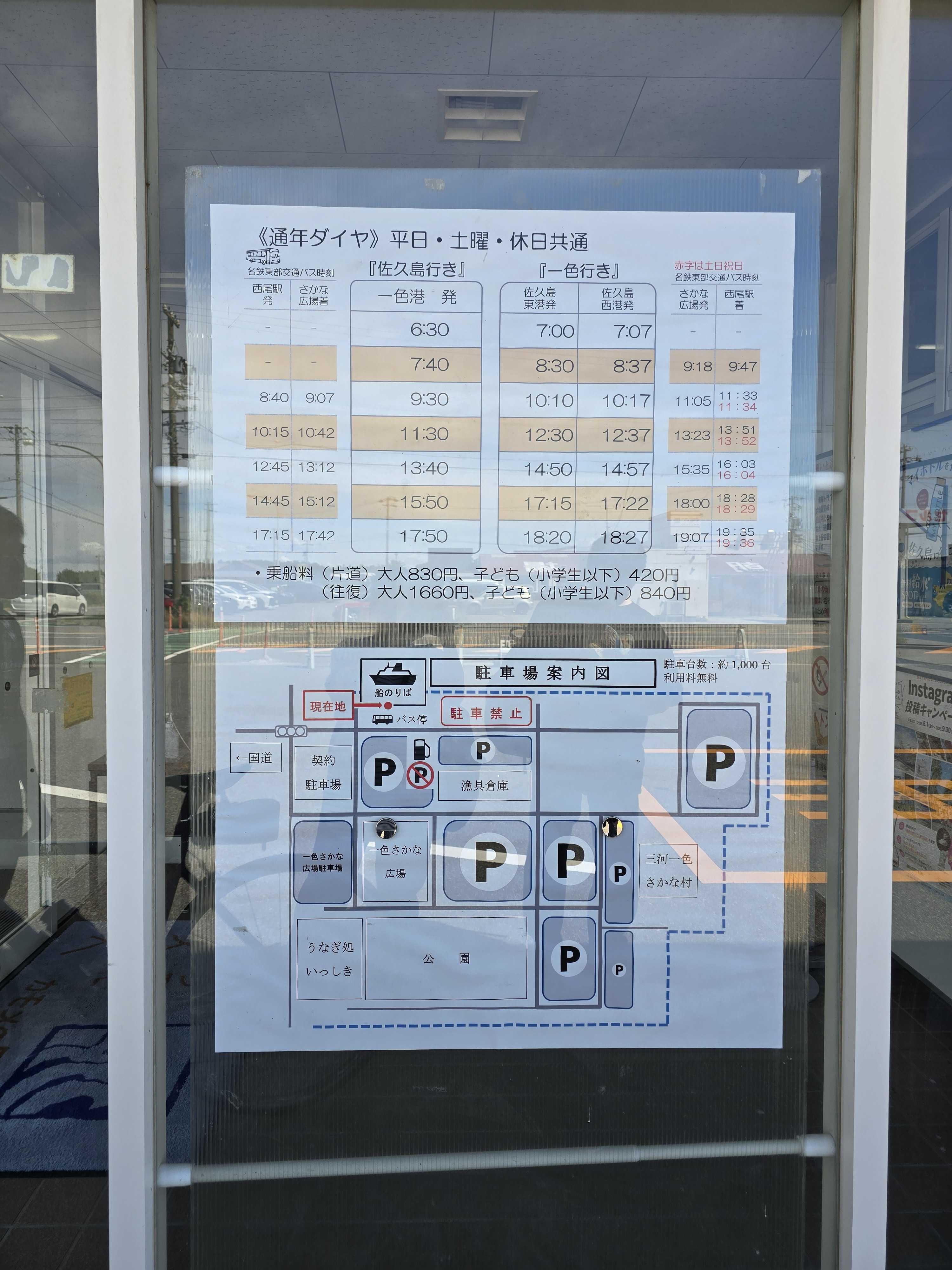 最初は、20日の土曜日に行く予定だったんですが・・・雨の予報がずれて・・・水曜日、旦那が、「金・土は、雨だから、日曜日に佐久島にするね」裏を返すと、金曜日、土曜日、ライブに行くねという事です。※23日現在で、今月は、9回目です。+自称残業は、3回です息子君は、朝一番で行きたかったんですが・・・旦那は、そんなに早く行ってもする事ないでしょと、11時半のフェリーに乗る予定。一色港までは、それなりの距離があるので、9時半出発予定で、準備してたんですが・・・息子君が自転車積むのに、ロスタイムし、忘れたものをしたと、戻ったり・・・一色港に着いたのは、11時無料駐車場は、フェリー乗り場近くは満車朝市もやってますが、食べている時間はない大人 往復 1660円×3自転車 往復 520円合計5500円。旦那が、3千円払いましたが・・・息子君が行きたいと言ったんだから、少しぐらい払わんかなと、息子君に請求しに行きました息子君も、彼の子ですね。持ってないと、突っぱねましたよ~干物自販機見送りは、オジサン一人約20分の船旅です佐久島が見えてきました私たちは、西港でおりました。乗って来たフェリーレンタサイクルを借りに行きます一人千円。旦那がレンタサイクルの申込書を記入し、支払う段階で、ひろちゃん、千円と手を出した今回の旅は、その場で、割り勘先に言いきられると、なんか言えない私がいかんのか旦那のペースに巻き込まれてますね。