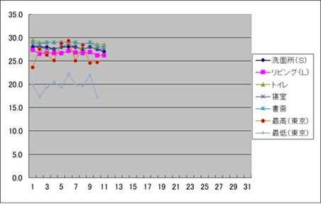 ![]() ![]() (6:00頃) 今朝の温度(5:45) 室温 リビング:26.2、 洗面所:27.0、 湿度(リビング):43%、 (昨日の外気温 東京、最高気温:24.7、最低気温:17.2 本日の天気予報 曇り時々雨 最高気温: 22、最低気温:17)
