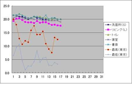 ![]() ![]() (6:45頃) 今朝の温度(5:30) 室温 リビング:17.6、 洗面所:20.0、 湿度(リビング):28%、 (昨日の外気温 東京、最高気温:12.5、最低気温: 3.3
