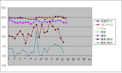 ![]() ![]() (7:00) 今朝の温度(5:30) 室温 リビング:17.2、 洗面所:19.0、 湿度(リビング):20%未満、 (昨日の外気温 東京、最高気温: 7.0、最低気温: 1.8