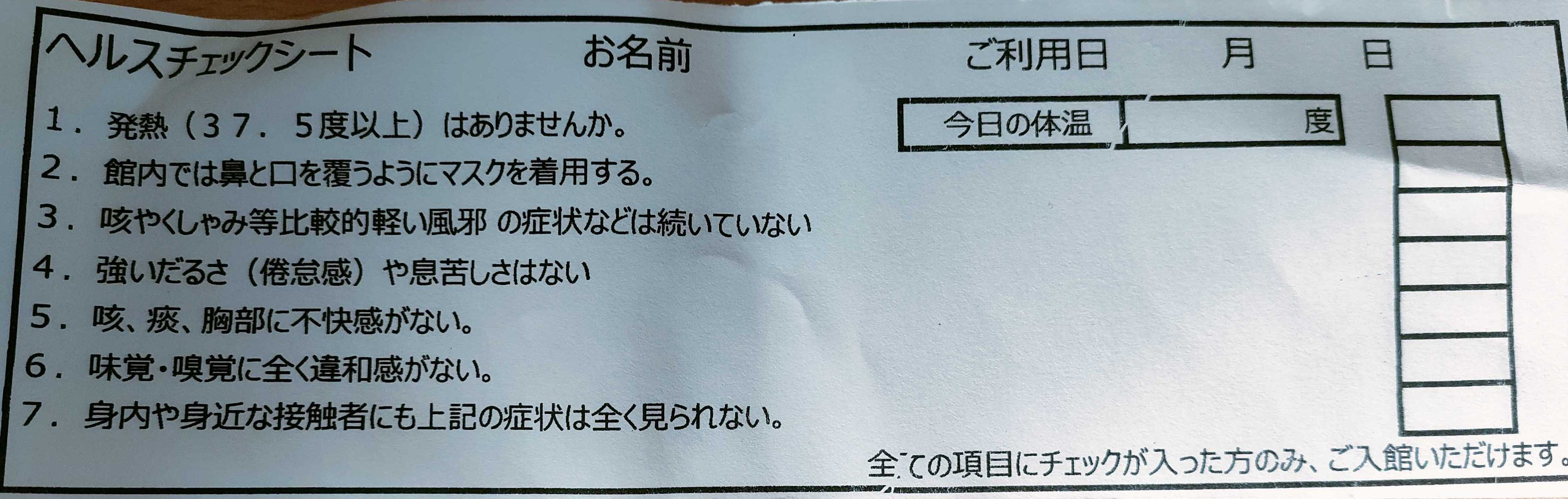 ジムの受付時に書いていたヘルスチェックシートが廃止になりました。正直、問題あれば、休むので、いちいち各意味ないと思ってたのでよかったです。検温は継続です。コロナも少しずつ落ち着いて、元に戻りつつあるのかな・・・早くマスクも不要になるといいのですが・・・