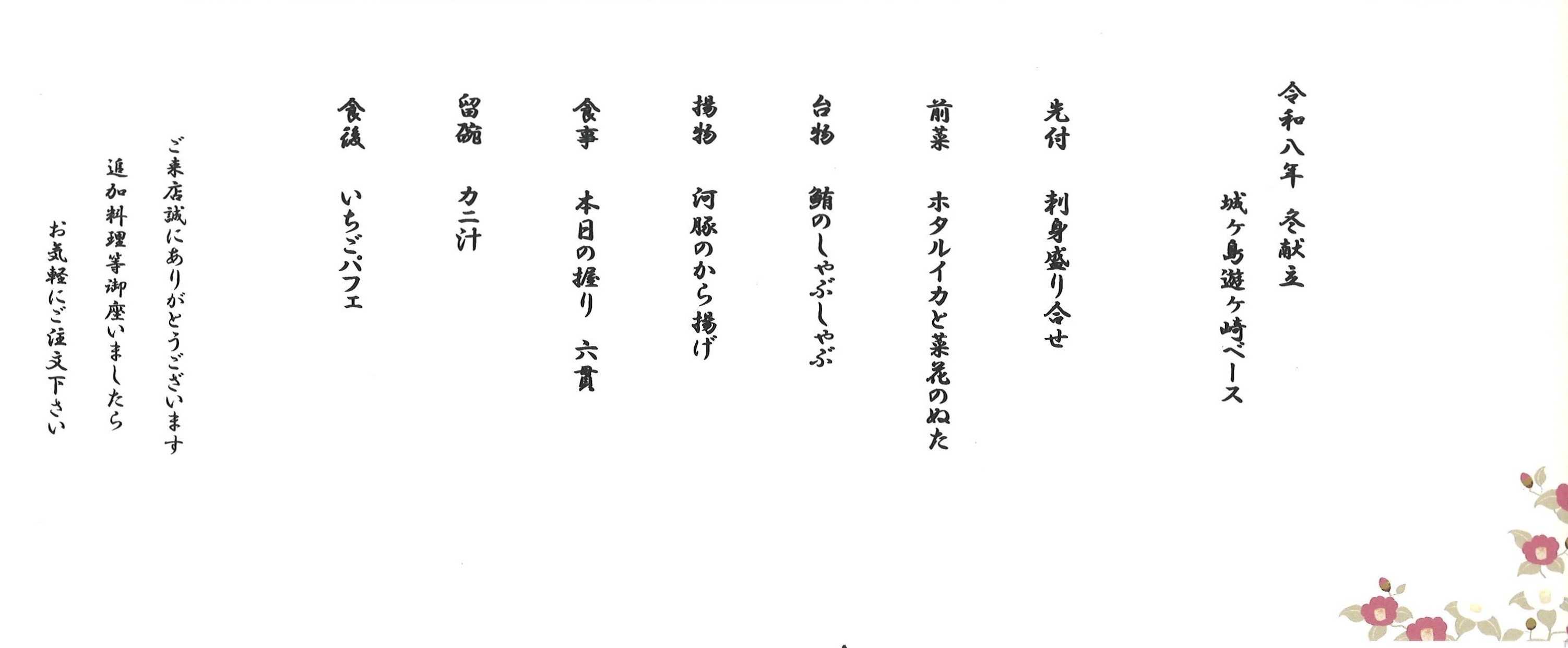 プチ 大地 メレ ミント ルチレ4.6kg ******************************************************** 三浦市『ドッグテラス アミエル』さんでトリミングだ ▼・。・▼」」」」ーワン!! 三浦市『ドッグテラス アミエル』さんでランチ \(^ω^\)( /^ω^)/ワーイ♪ 『CARO FORESTA 城ヶ島遊ヶ崎BASE』でメレうちのコ記念日おめでとうの旅 U^ェ^U ダワン! の続きです。 お夕食は18時半に1階のレストランで ![]() プチ大地メレルチレは馬肉のサイコロステーキを召し上がれ (Sサイズ1食を夜と朝で半量ずつ出してもらいました) ![]() 令和8年 冬献立 ![]() ハイボールのシングルでかんぱーい メレ、我が家に来てくれてありがとう ![]() ![]() お酒がすすむ~ ![]() 日本酒飲み比べおまかせでお願いしまーす ![]() お寿司来た シャリ小さめでお願いしました ![]() 追加で真鯛・ヒラメ・カンパチを ![]() 美味しいお夕食に大満足 ![]() この日は『お部屋に戻ってもう1杯』はナシ ルチレもHITONもあっという間に夢の中 続きます&皆さま素敵な週末を プチ大地メレミントルチレに応援クリックよろしくお願いします ( 別ウィンドウが開ききるまではそのままでお願いしますm(_ _)m ) ![]() ![]() 画像をクリックすると今までの作品をご覧いただけます*******************************************************