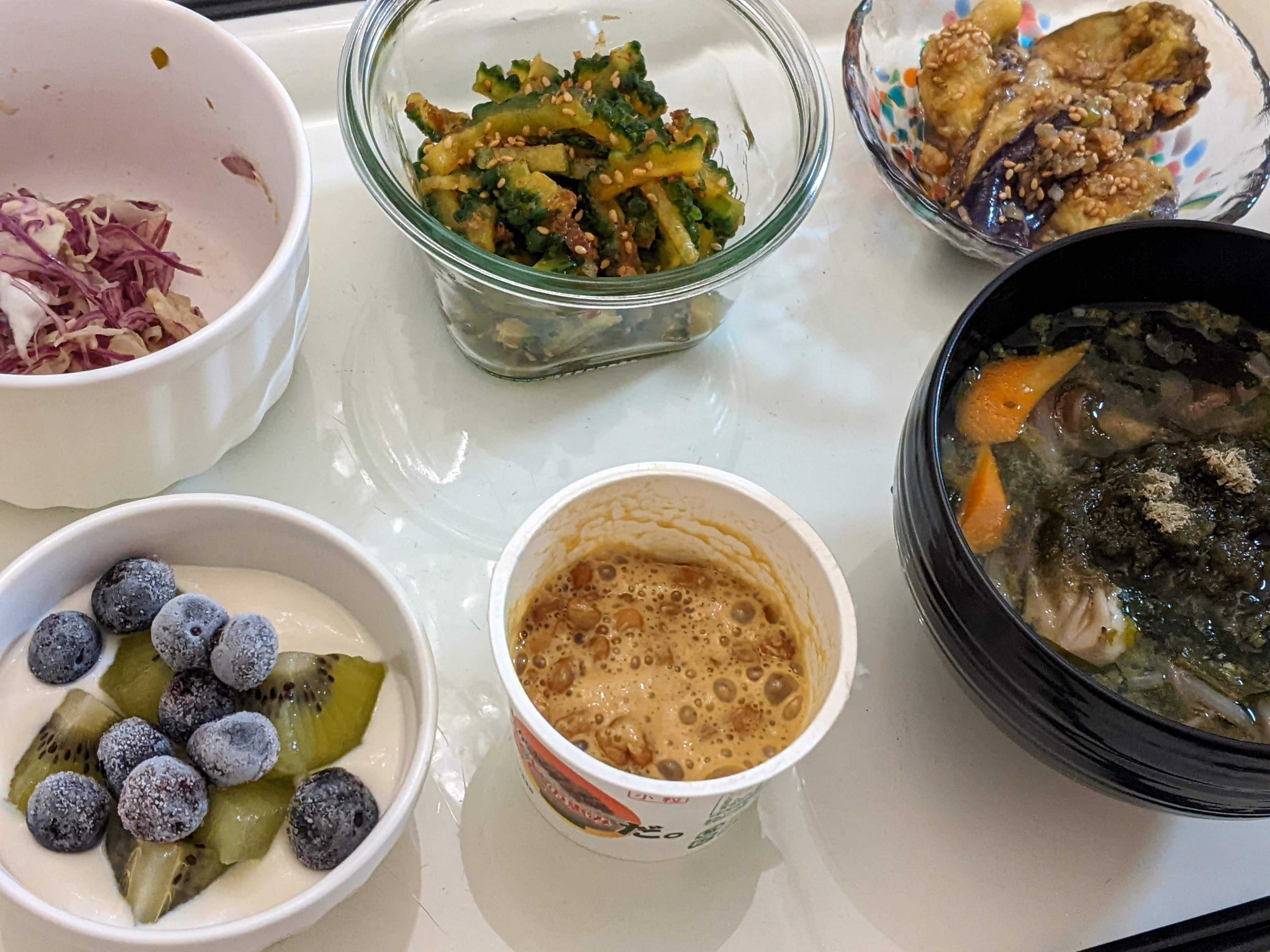 昨夜の振り返り。 23時過ぎ 就寝(すぐに入眠したもよう)3時前 トイレへ(その後すぐに入眠したもよう) 6時 目が覚める 7時 起床 良かったー!今回は眠れた!!(まぁ、2日もちゃんと寝れてなかったしね・苦笑) 2日間も寝不足が続いていたからか、右耳の調子はイマイチで違和感有。 この”眠れる日”が少しも続いてくれるといいんだけど。 そういえば夕飯の後に豆乳バナナジュース飲んだっけ。 アレも良かったのかなぁ?念のため今夜も飲んでおこうか?? まぁ兎にも角にも眠れて良かった!ホッと一安心。 昨夜も眠れなかったら・・・大きなぬいぐるみを買ってしまうところだったわ(笑) そんな気分の良い朝のごはん。 ![]() <朝ごはん> ・具沢山味噌汁(昨夜の残り) ・真鯛の漬け丼 ・キャベツとツナのサラダ(というか和え物って感じかも?) ・ゆで卵のサラダ ・カボチャの煮物 ・糠漬け(キュウリ、大根) ・オレンジ、キウイ、ブルーベリー ちょっと食べ過ぎた。お腹いっぱい。 丼ぶりのごはん、150gは多めだったなー、反省。 ![]() <晩ごはん> ・味噌汁(モヤシ、メカブ、モロヘイヤ、モヤシ、ニンジン、シメジ) ・納豆 ・蒸し茄子のネギだく漬け ・ゴーヤのお浸し ・キャベツとツナのサラダ ・豆乳グルト(キウイ、ブルーベリーのせ) 作り置きお惣菜、キャベツとツナの和え物が終わったので新しいのを投入。 蒸し茄子のネギだく漬けを作ってみた。結構好きかも。 てか、ゴーヤ! 数日前に実家からいただいたんだけど、 キッチンに放置していたらそろそろ爆発しそうな状態だった。 良かったー、破裂する前に気づいて(苦笑) 野菜をもらったらすぐ調理するようにしないとダメね。 でもつい「明日作ろう!」と先延ばしにするクセが抜けない。 『すぐやる』な人になりたいんだけどなー(苦笑) また眠れない!なんてことが無いように 「眠くなったらまず寝る!」というスタンスでいこう。 さて、そろそろデトックスタイムだわー。 今夜はどうなるかしら?ドキドキしちゃーう!(笑) お気に入りの記事を「いいね!」で応援しよう