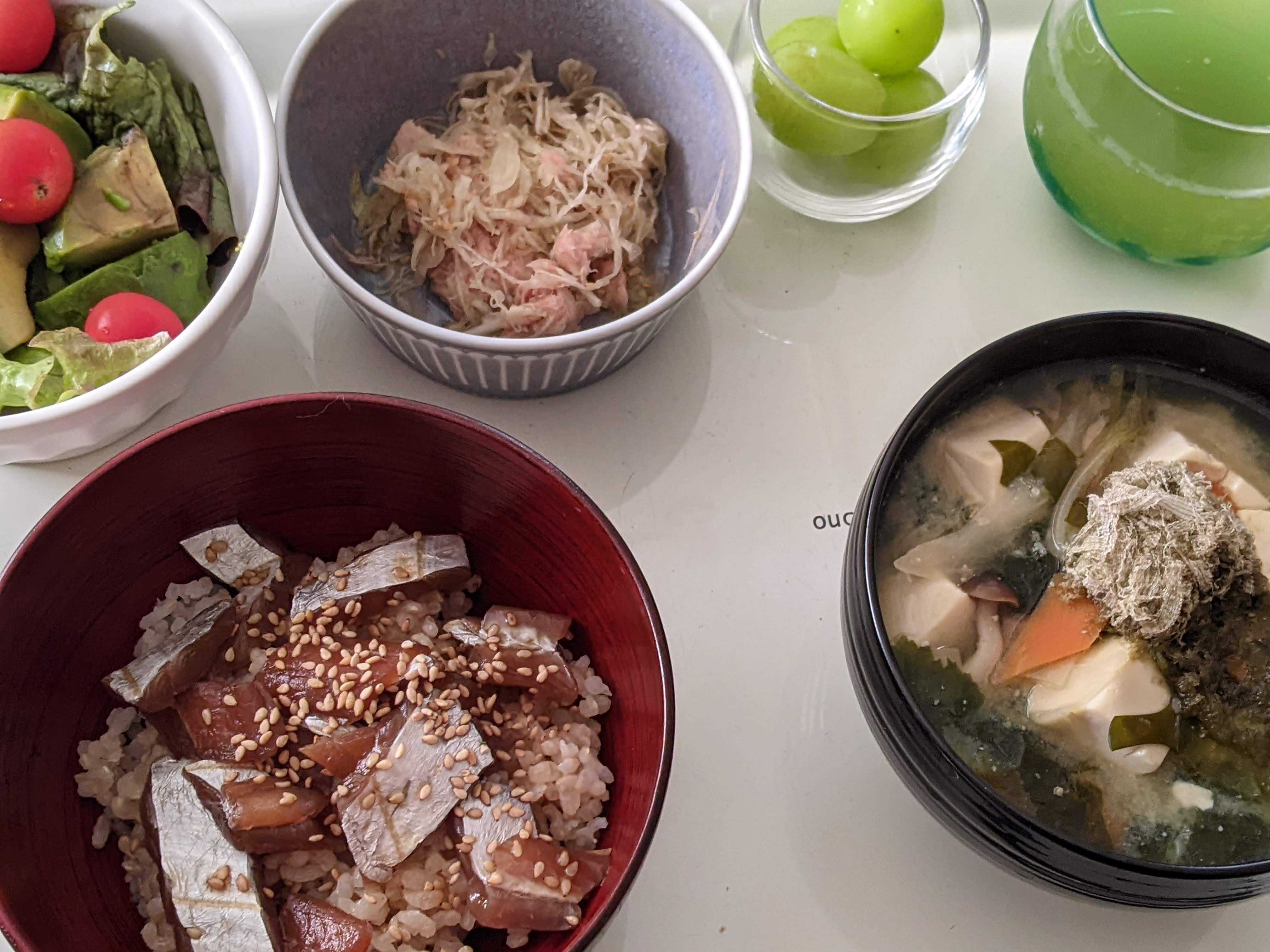 うん、まぁね。そうなると思った。 なのであまり驚きはしない。 <朝ごはん> ・味噌汁(昨日の残り) ・りゅうきゅう(太刀魚) ・玄米ごはん 80g ・キャベツとツナのポン酢和え ・アボカドサラダ ・シャインマスカット <昼ごはん> ・味噌汁 ・肉野菜炒め ・ごはん 120gくらい <夜ごはん> ・フレンチのコース ・お酒いろいろ(ペアリングにした) お酒飲んだし、夜しっかり食べたし、この日は気にしないことに。 そして・・・眠れなかった(苦笑) まぁ、太る要素満載の1日だったのは確か。 付き合いは楽しむ! どっかで帳尻合わせよう!(笑)