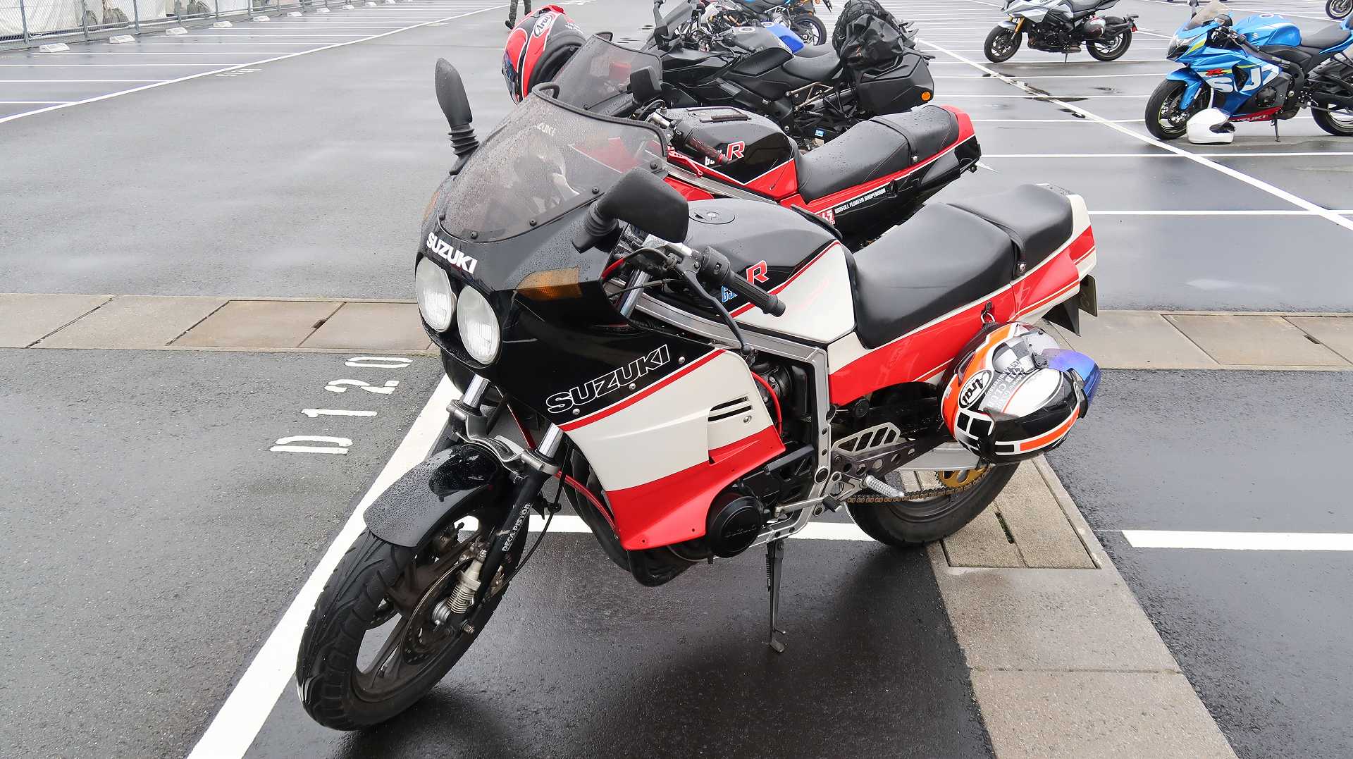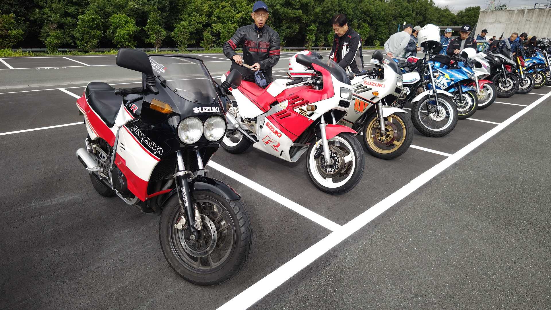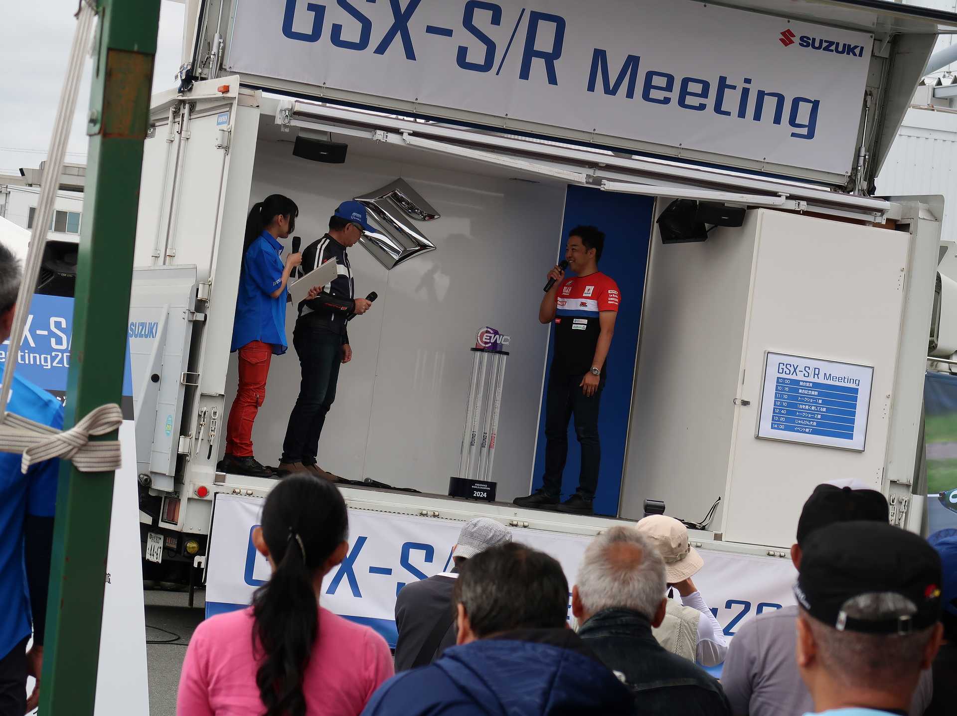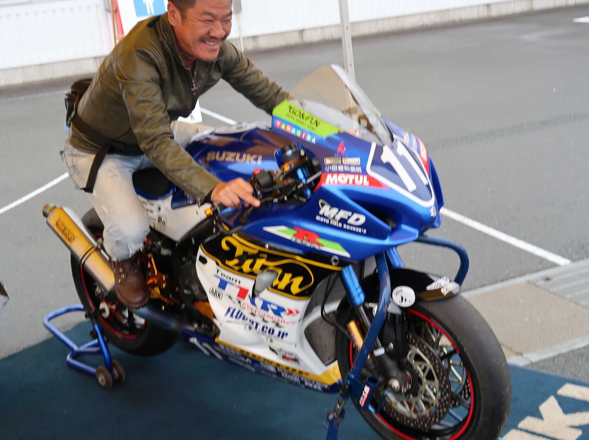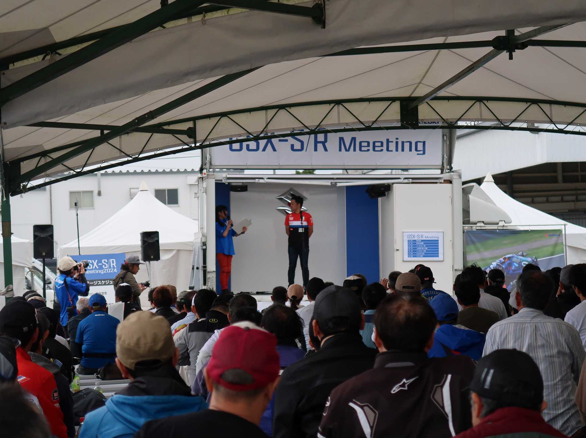 高速乗って、浜松に 前に、2台走ってるなあ、、、GSX-R??って思って、抜いてみたら、GK71F 八風の糸さんの赤白だなあ、、もちろん前を走ってるのは、ひで爺さんのWW 9:26 ってことで、後ろについて、会場に ![]() ![]() 10:04 開会の挨拶 撮影禁止って、サイトに書かれていたのに、まったくそんな気配もなく、皆さん、バシャバシャ撮影されてますね。。。 それなら一眼持ってきたら良かった。。。 駐車場で、色々と撮影したいGSX-Rあったのに。。。 この駐車場、今回のイベントのために、砂利だったところを、夏休みに舗装したそうです ![]() GSX-Rが販売されて40周年との言葉がありました 国内で400が発売されて40周年 その次の年にグローバルで (まあ、400は、海外でも売られてましたが・・・・そのこと、知ってるかは??と社員の一人の方が。。。) ヨシムラのトロフィーを両社長が! ![]() ![]() ![]() ![]() 11:17 ヨシムラのメンバーと、佐原さんのトークショー 24時間は、やっぱり長いそうですね。。。 ![]() ![]() 11:36 CN CHARENGEのトークショー 日本のバイクなので、小さくて、腰が痛くて、予定より早く交代した話とか、生形さんとの体格差とか ひたすらプレッシャーかけられてた話とか、他にも、色々と楽しい話ありました 津田さんがテストしたときに、ブレーキパッドがまったく使い物にならなかったけど かなりきつくいって、2週間で、通常のものと、大差ないところまで使えるようになったと ここには来てないからと、サンスターさんの名前だして、ダメだしの話されてましたね チームの皆が、トップテントライアルの日が佐原さんの還暦の誕生日で、その日に、赤いTシャツを作ってくれて、それをトップテントライアルの時に着る予定だったが出れなくて残念だったと それを今日は一日着てますってことでした ![]() ![]() ![]() 私はやっぱりでかくて、目立つようで、80's Meetingの仲間たちが、たくさん、声をかけていただき。。。 色々とお話させていただきました ![]() 12:15 GSX-S/Rミーティング 一台を長く愛している賞 条件は、自己申告のみ、GSX-Rで、新車から長く乗っている方 もちろん優勝は、我らがGK71B CLUBのCHOKUさんです! GSX-R HBを新車で購入40年間は、一人でした 他、1985の750の方とか、色々と表彰 CHOKUさんに、たくさんの報道陣がかこみで、撮影されてる姿は、むちゃくちゃ受けました そして、表彰者が一堂に並び。。。 う~む、親方たちの土俵入りですかね。。。。 ちなみに、私は、新車からという条件でダメでした 35年なんですけどね~ ![]() ![]() ![]() ![]() ![]() ![]() ![]() chokuさんのHBは、こちら 静岡県在住のchokuさんのGSX400R-C ![]() ![]() chokuさんのコメント(2004/04/05) ご無沙汰しております。2月にGK71B CLUBへのメールをさせていただいた、 choku と申します。 返事を頂いたにもかかわらず、何の連絡もせず失礼いたしました。 GSX-Rの出先での最近の写真が見当たらなかったので、 自宅で撮ってみました。 余りきれいに撮れていませんが、よろしければHPで紹介願います。 現在は、昨年の夏以来ほとんどエンジンをかけていなかった為、 キャブがオーバーフローをおこして、掃除が必要な状態です。 ここ数年はほとんど乗らない上に、自分では洗車位しかしないし、 ドノーマルですので、整備の苦労とかは自分では余りして無いのですが、 だんだんパーツの欠品に悩みだしているところです。 今年はGSX-R誕生20周年ですので、何かお手伝いできることがあれば、 お手伝いさせていただきたいと思います。 今年も渚園には行く予定ですが、皆さんと集まる機会になればと思っています。 いつまで可動状態を維持できるか判りませんが、末永くよろしくお願いします。 ------------------------------------------------------ そうです、初期メンバーのchokuさん 20年前、スズキミーティングでの、GSX-R20周年の時にも参加され、横内さんともお話してます。 2004/07/17(土)-19(月)天竜-袋井 GSX-R 20周年記念 GK71B CLUB MEETING 左端がchokuさん、右端が横内さん ![]() 辻本さんの右側がchokuさん ![]() 色々とブースのほうも見てみます 12:20 ![]() ![]() ![]() MOTULさんのブースで挨拶 ちゃんと、私のことは、皆さん覚えていていただけました NAPS京都八幡店でのMOTULイベントで、皆様に挨拶と、80's Meetingの紹介をさせていただき Mar 30, 2024 GAG125で、NAPS京都八幡店 「MOTUL JACK」に、クリーナーで綺麗にしていただきました! #GAG #NAPS #MOTUL ![]() Mar 30, 2024 HBΓで、自賠責入って、再度NAPSに。MTオイル交換していただきました。 #MOTUL #HB #RG250Γ #GJ21A #NAPS ![]() Mar 31, 2024X 今日はGJ21Bの方のオイル交換。辻本さんシュワンツのサイン入りタペストリーと写真を撮らせていただきました。 #村瀬春香 #密照幸映 #NAPS #MOTUL #GJ21B #ヨシムラ #RG250Γ ![]() ![]() ![]() ![]() Mar 31, 2024 GJ21Bと2024 Ambassadeur de MOTULのお二人との写真を撮らせていただきました。 #村瀬春香 #密照幸映 #NAPS #MOTUL #GJ21B #ヨシムラ #RG250Γ ![]() 鈴鹿8耐で、企画書をお渡しして協賛のお願いを そして、80's Meeting 2024に、協賛いただきました!! みなさん、本