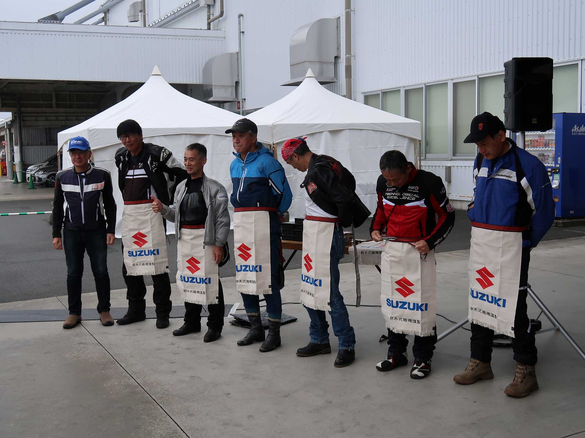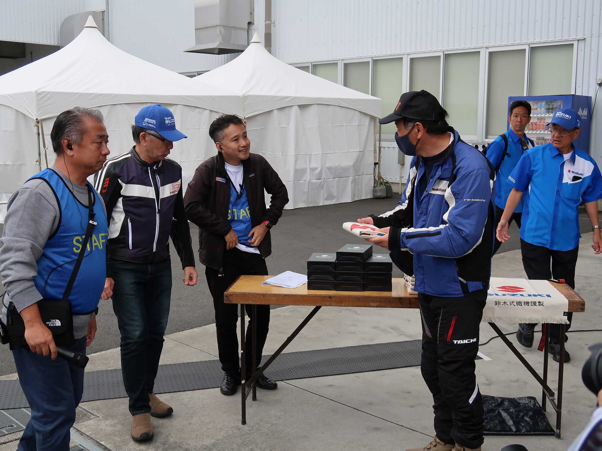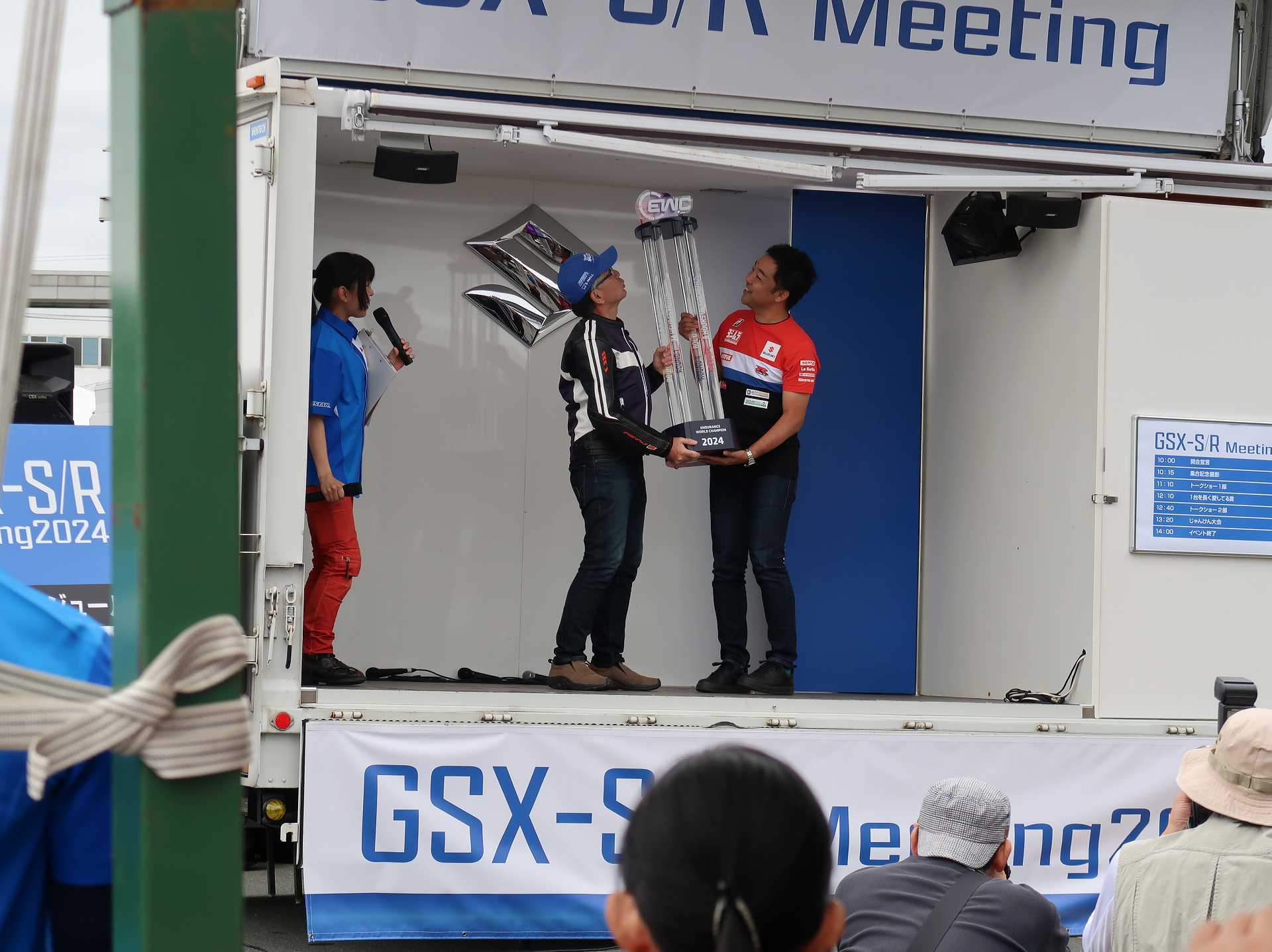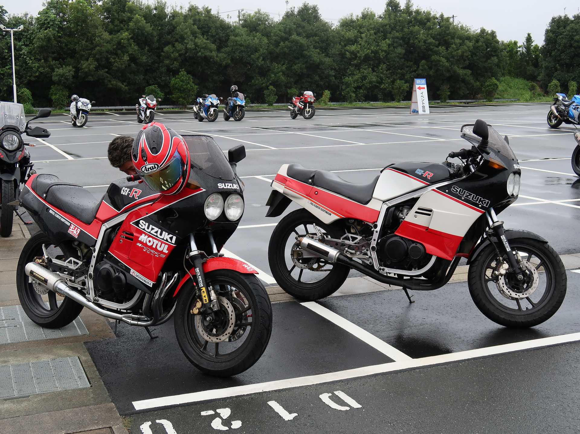 高速乗って、浜松に 前に、2台走ってるなあ、、、GSX-R??って思って、抜いてみたら、GK71F 八風の糸さんの赤白だなあ、、もちろん前を走ってるのは、ひで爺さんのWW 9:26 ってことで、後ろについて、会場に ![]() ![]() 10:04 開会の挨拶 撮影禁止って、サイトに書かれていたのに、まったくそんな気配もなく、皆さん、バシャバシャ撮影されてますね。。。 それなら一眼持ってきたら良かった。。。 駐車場で、色々と撮影したいGSX-Rあったのに。。。 この駐車場、今回のイベントのために、砂利だったところを、夏休みに舗装したそうです ![]() GSX-Rが販売されて40周年との言葉がありました 国内で400が発売されて40周年 その次の年にグローバルで (まあ、400は、海外でも売られてましたが・・・・そのこと、知ってるかは??と社員の一人の方が。。。) ヨシムラのトロフィーを両社長が! ![]() ![]() ![]() ![]() 11:17 ヨシムラのメンバーと、佐原さんのトークショー 24時間は、やっぱり長いそうですね。。。 ![]() ![]() 11:36 CN CHARENGEのトークショー 日本のバイクなので、小さくて、腰が痛くて、予定より早く交代した話とか、生形さんとの体格差とか ひたすらプレッシャーかけられてた話とか、他にも、色々と楽しい話ありました 津田さんがテストしたときに、ブレーキパッドがまったく使い物にならなかったけど かなりきつくいって、2週間で、通常のものと、大差ないところまで使えるようになったと ここには来てないからと、サンスターさんの名前だして、ダメだしの話されてましたね チームの皆が、トップテントライアルの日が佐原さんの還暦の誕生日で、その日に、赤いTシャツを作ってくれて、それをトップテントライアルの時に着る予定だったが出れなくて残念だったと それを今日は一日着てますってことでした ![]() ![]() ![]() 私はやっぱりでかくて、目立つようで、80's Meetingの仲間たちが、たくさん、声をかけていただき。。。 色々とお話させていただきました ![]() 12:15 GSX-S/Rミーティング 一台を長く愛している賞 条件は、自己申告のみ、GSX-Rで、新車から長く乗っている方 もちろん優勝は、我らがGK71B CLUBのCHOKUさんです! GSX-R HBを新車で購入40年間は、一人でした 他、1985の750の方とか、色々と表彰 CHOKUさんに、たくさんの報道陣がかこみで、撮影されてる姿は、むちゃくちゃ受けました そして、表彰者が一堂に並び。。。 う~む、親方たちの土俵入りですかね。。。。 ちなみに、私は、新車からという条件でダメでした 35年なんですけどね~ ![]() ![]() ![]() ![]() ![]() ![]() ![]() chokuさんのHBは、こちら 静岡県在住のchokuさんのGSX400R-C ![]() ![]() chokuさんのコメント(2004/04/05) ご無沙汰しております。2月にGK71B CLUBへのメールをさせていただいた、 choku と申します。 返事を頂いたにもかかわらず、何の連絡もせず失礼いたしました。 GSX-Rの出先での最近の写真が見当たらなかったので、 自宅で撮ってみました。 余りきれいに撮れていませんが、よろしければHPで紹介願います。 現在は、昨年の夏以来ほとんどエンジンをかけていなかった為、 キャブがオーバーフローをおこして、掃除が必要な状態です。 ここ数年はほとんど乗らない上に、自分では洗車位しかしないし、 ドノーマルですので、整備の苦労とかは自分では余りして無いのですが、 だんだんパーツの欠品に悩みだしているところです。 今年はGSX-R誕生20周年ですので、何かお手伝いできることがあれば、 お手伝いさせていただきたいと思います。 今年も渚園には行く予定ですが、皆さんと集まる機会になればと思っています。 いつまで可動状態を維持できるか判りませんが、末永くよろしくお願いします。 ------------------------------------------------------ そうです、初期メンバーのchokuさん 20年前、スズキミーティングでの、GSX-R20周年の時にも参加され、横内さんともお話してます。 2004/07/17(土)-19(月)天竜-袋井 GSX-R 20周年記念 GK71B CLUB MEETING 左端がchokuさん、右端が横内さん ![]() 辻本さんの右側がchokuさん ![]() 色々とブースのほうも見てみます 12:20 ![]() ![]() ![]() MOTULさんのブースで挨拶 ちゃんと、私のことは、皆さん覚えていていただけました NAPS京都八幡店でのMOTULイベントで、皆様に挨拶と、80's Meetingの紹介をさせていただき Mar 30, 2024 GAG125で、NAPS京都八幡店 「MOTUL JACK」に、クリーナーで綺麗にしていただきました! #GAG #NAPS #MOTUL ![]() Mar 30, 2024 HBΓで、自賠責入って、再度NAPSに。MTオイル交換していただきました。 #MOTUL #HB #RG250Γ #GJ21A #NAPS ![]() Mar 31, 2024X 今日はGJ21Bの方のオイル交換。辻本さんシュワンツのサイン入りタペストリーと写真を撮らせていただきました。 #村瀬春香 #密照幸映 #NAPS #MOTUL #GJ21B #ヨシムラ #RG250Γ ![]() ![]() ![]() ![]() Mar 31, 2024 GJ21Bと2024 Ambassadeur de MOTULのお二人との写真を撮らせていただきました。 #村瀬春香 #密照幸映 #NAPS #MOTUL #GJ21B #ヨシムラ #RG250Γ ![]() 鈴鹿8耐で、企画書をお渡しして協賛のお願いを そして、80's Meeting 2024に、協賛いただきました!! みなさん、本