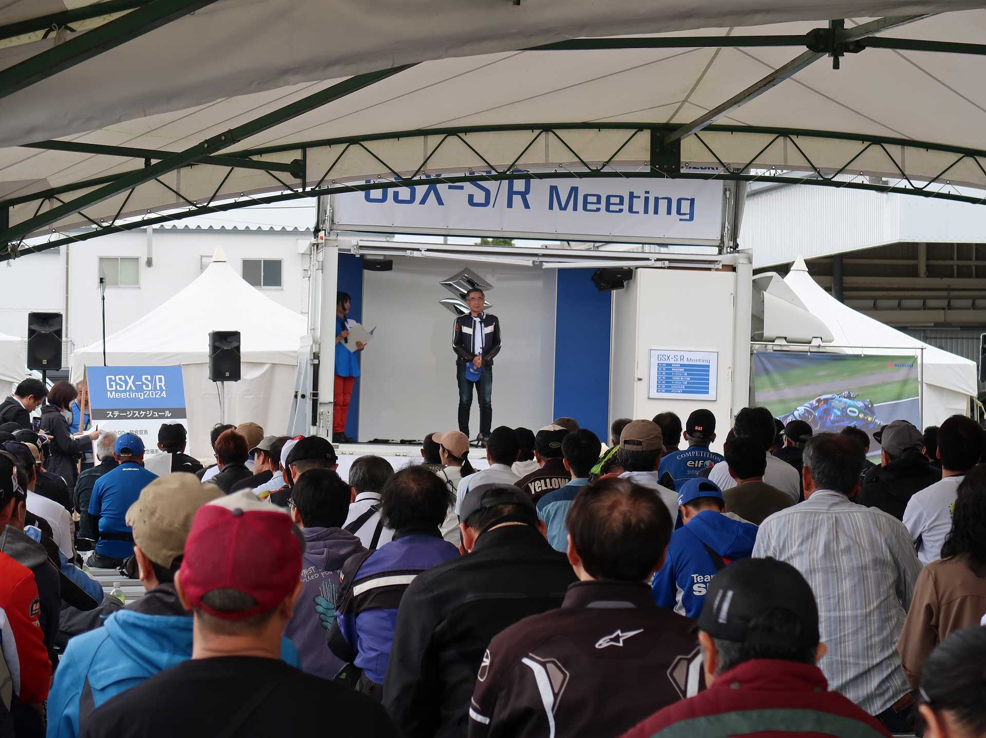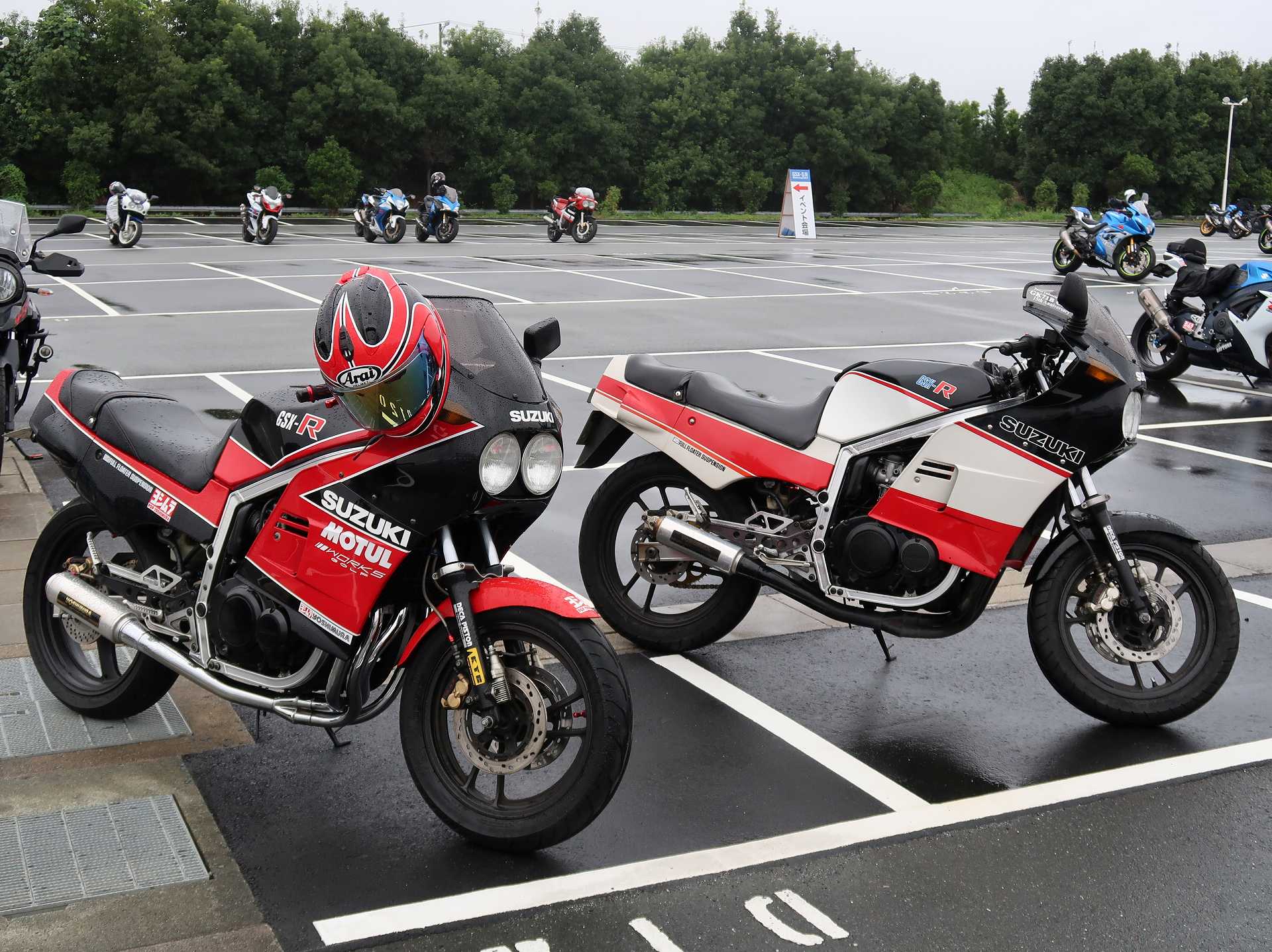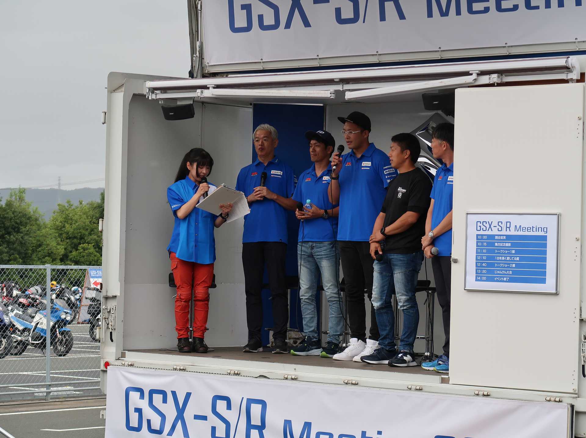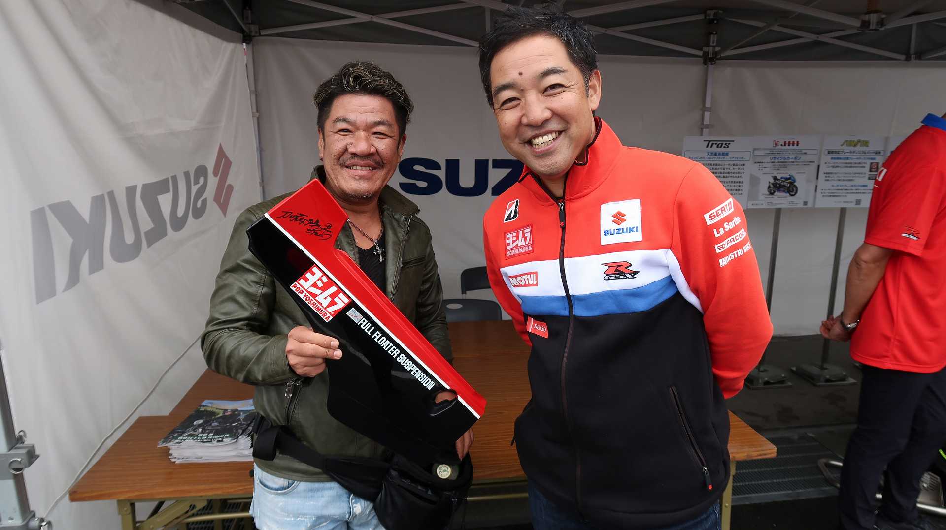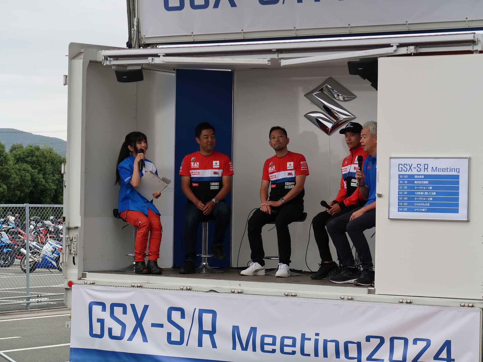 高速乗って、浜松に 前に、2台走ってるなあ、、、GSX-R??って思って、抜いてみたら、GK71F 八風の糸さんの赤白だなあ、、もちろん前を走ってるのは、ひで爺さんのWW 9:26 ってことで、後ろについて、会場に ![]() ![]() 10:04 開会の挨拶 撮影禁止って、サイトに書かれていたのに、まったくそんな気配もなく、皆さん、バシャバシャ撮影されてますね。。。 それなら一眼持ってきたら良かった。。。 駐車場で、色々と撮影したいGSX-Rあったのに。。。 この駐車場、今回のイベントのために、砂利だったところを、夏休みに舗装したそうです ![]() GSX-Rが販売されて40周年との言葉がありました 国内で400が発売されて40周年 その次の年にグローバルで (まあ、400は、海外でも売られてましたが・・・・そのこと、知ってるかは??と社員の一人の方が。。。) ヨシムラのトロフィーを両社長が! ![]() ![]() ![]() ![]() 11:17 ヨシムラのメンバーと、佐原さんのトークショー 24時間は、やっぱり長いそうですね。。。 ![]() ![]() 11:36 CN CHARENGEのトークショー 日本のバイクなので、小さくて、腰が痛くて、予定より早く交代した話とか、生形さんとの体格差とか ひたすらプレッシャーかけられてた話とか、他にも、色々と楽しい話ありました 津田さんがテストしたときに、ブレーキパッドがまったく使い物にならなかったけど かなりきつくいって、2週間で、通常のものと、大差ないところまで使えるようになったと ここには来てないからと、サンスターさんの名前だして、ダメだしの話されてましたね チームの皆が、トップテントライアルの日が佐原さんの還暦の誕生日で、その日に、赤いTシャツを作ってくれて、それをトップテントライアルの時に着る予定だったが出れなくて残念だったと それを今日は一日着てますってことでした ![]() ![]() ![]() 私はやっぱりでかくて、目立つようで、80's Meetingの仲間たちが、たくさん、声をかけていただき。。。 色々とお話させていただきました ![]() 12:15 GSX-S/Rミーティング 一台を長く愛している賞 条件は、自己申告のみ、GSX-Rで、新車から長く乗っている方 もちろん優勝は、我らがGK71B CLUBのCHOKUさんです! GSX-R HBを新車で購入40年間は、一人でした 他、1985の750の方とか、色々と表彰 CHOKUさんに、たくさんの報道陣がかこみで、撮影されてる姿は、むちゃくちゃ受けました そして、表彰者が一堂に並び。。。 う~む、親方たちの土俵入りですかね。。。。 ちなみに、私は、新車からという条件でダメでした 35年なんですけどね~ ![]() ![]() ![]() ![]() ![]() ![]() ![]() chokuさんのHBは、こちら 静岡県在住のchokuさんのGSX400R-C ![]() ![]() chokuさんのコメント(2004/04/05) ご無沙汰しております。2月にGK71B CLUBへのメールをさせていただいた、 choku と申します。 返事を頂いたにもかかわらず、何の連絡もせず失礼いたしました。 GSX-Rの出先での最近の写真が見当たらなかったので、 自宅で撮ってみました。 余りきれいに撮れていませんが、よろしければHPで紹介願います。 現在は、昨年の夏以来ほとんどエンジンをかけていなかった為、 キャブがオーバーフローをおこして、掃除が必要な状態です。 ここ数年はほとんど乗らない上に、自分では洗車位しかしないし、 ドノーマルですので、整備の苦労とかは自分では余りして無いのですが、 だんだんパーツの欠品に悩みだしているところです。 今年はGSX-R誕生20周年ですので、何かお手伝いできることがあれば、 お手伝いさせていただきたいと思います。 今年も渚園には行く予定ですが、皆さんと集まる機会になればと思っています。 いつまで可動状態を維持できるか判りませんが、末永くよろしくお願いします。 ------------------------------------------------------ そうです、初期メンバーのchokuさん 20年前、スズキミーティングでの、GSX-R20周年の時にも参加され、横内さんともお話してます。 2004/07/17(土)-19(月)天竜-袋井 GSX-R 20周年記念 GK71B CLUB MEETING 左端がchokuさん、右端が横内さん ![]() 辻本さんの右側がchokuさん ![]() 色々とブースのほうも見てみます 12:20 ![]() ![]() ![]() MOTULさんのブースで挨拶 ちゃんと、私のことは、皆さん覚えていていただけました NAPS京都八幡店でのMOTULイベントで、皆様に挨拶と、80's Meetingの紹介をさせていただき Mar 30, 2024 GAG125で、NAPS京都八幡店 「MOTUL JACK」に、クリーナーで綺麗にしていただきました! #GAG #NAPS #MOTUL ![]() Mar 30, 2024 HBΓで、自賠責入って、再度NAPSに。MTオイル交換していただきました。 #MOTUL #HB #RG250Γ #GJ21A #NAPS ![]() Mar 31, 2024X 今日はGJ21Bの方のオイル交換。辻本さんシュワンツのサイン入りタペストリーと写真を撮らせていただきました。 #村瀬春香 #密照幸映 #NAPS #MOTUL #GJ21B #ヨシムラ #RG250Γ ![]() ![]() ![]() ![]() Mar 31, 2024 GJ21Bと2024 Ambassadeur de MOTULのお二人との写真を撮らせていただきました。 #村瀬春香 #密照幸映 #NAPS #MOTUL #GJ21B #ヨシムラ #RG250Γ ![]() 鈴鹿8耐で、企画書をお渡しして協賛のお願いを そして、80's Meeting 2024に、協賛いただきました!! みなさん、本