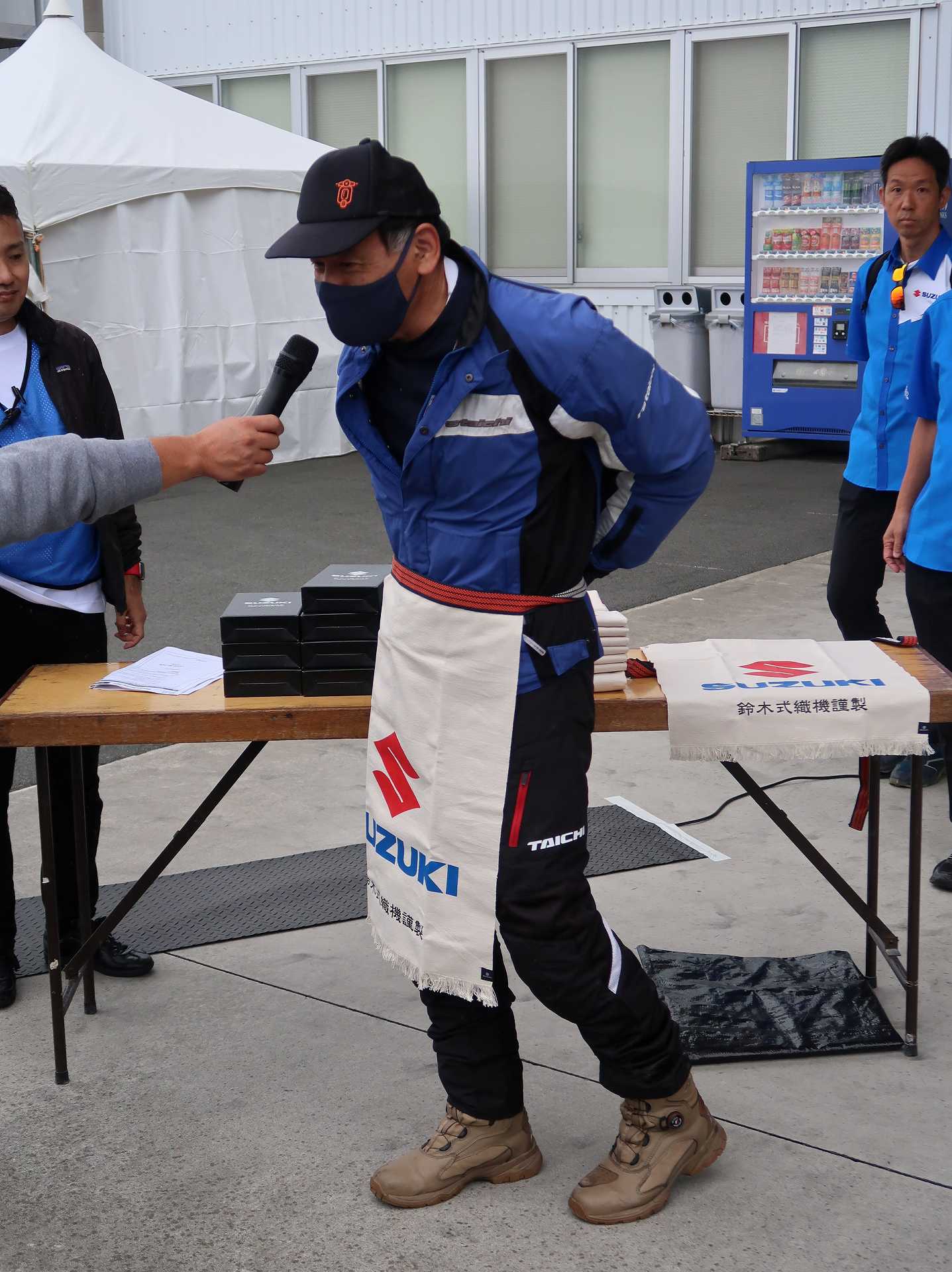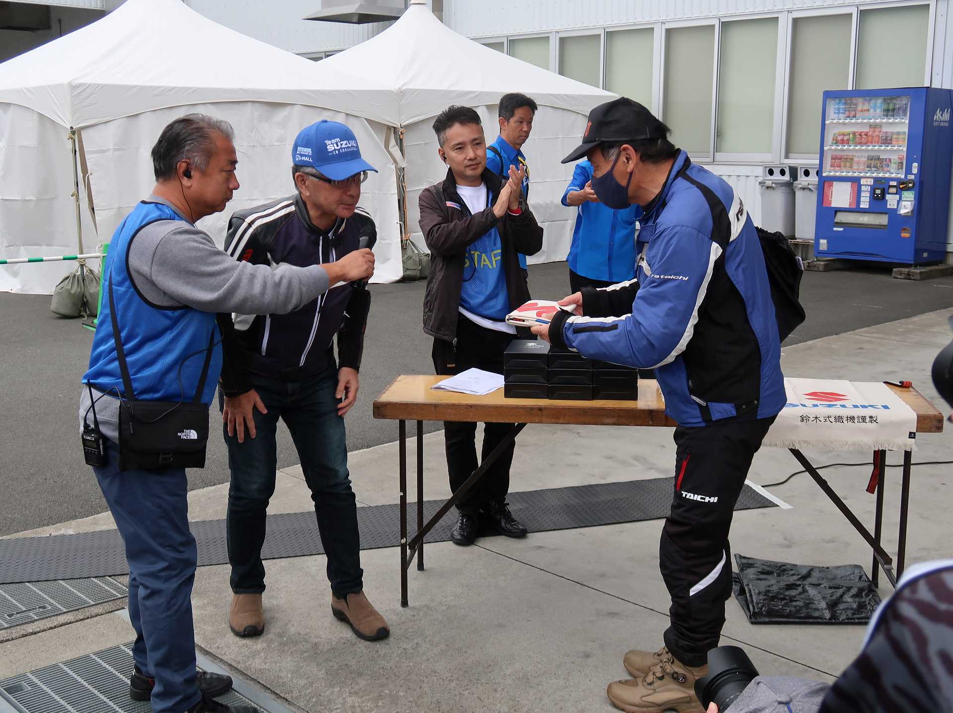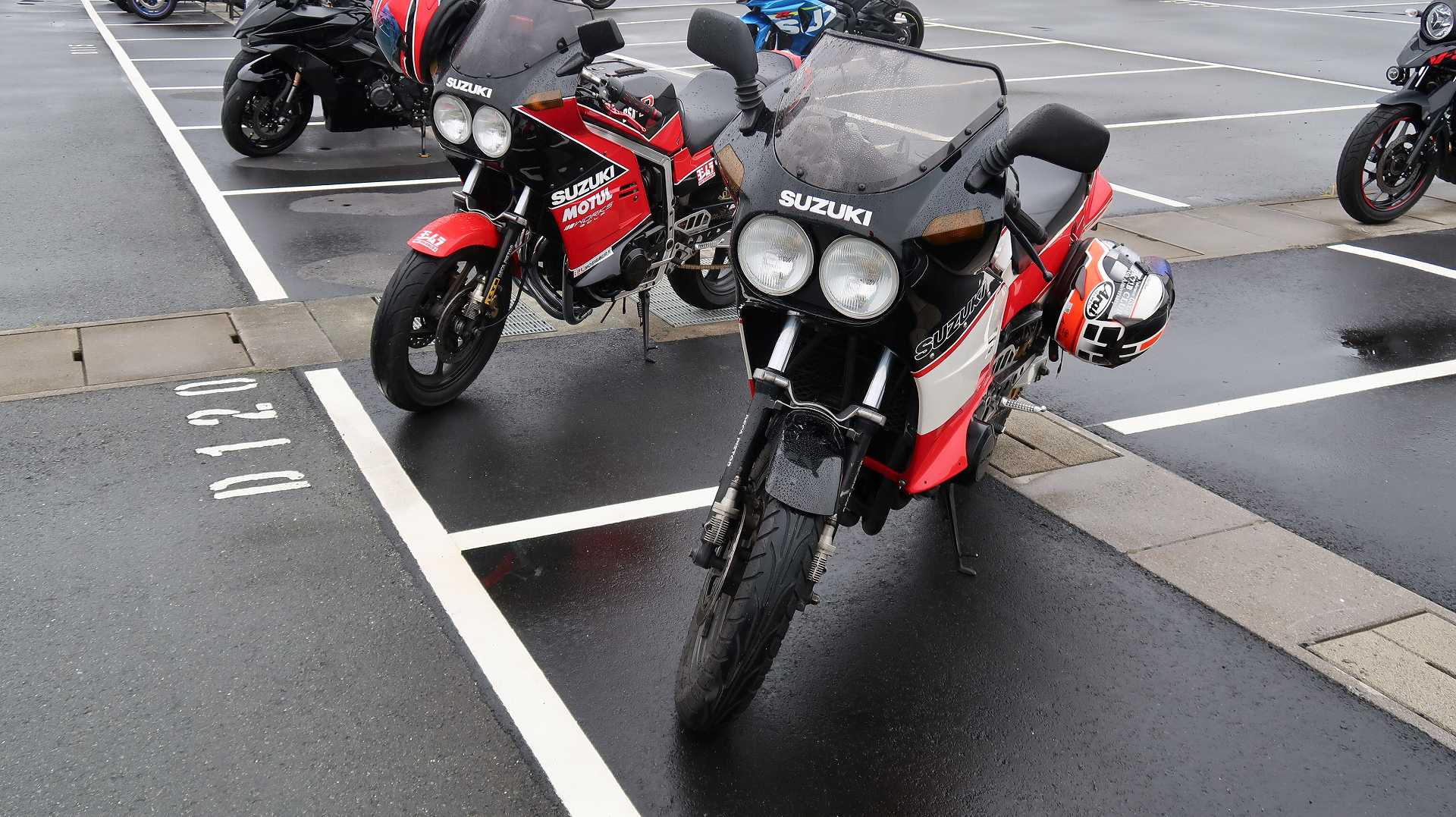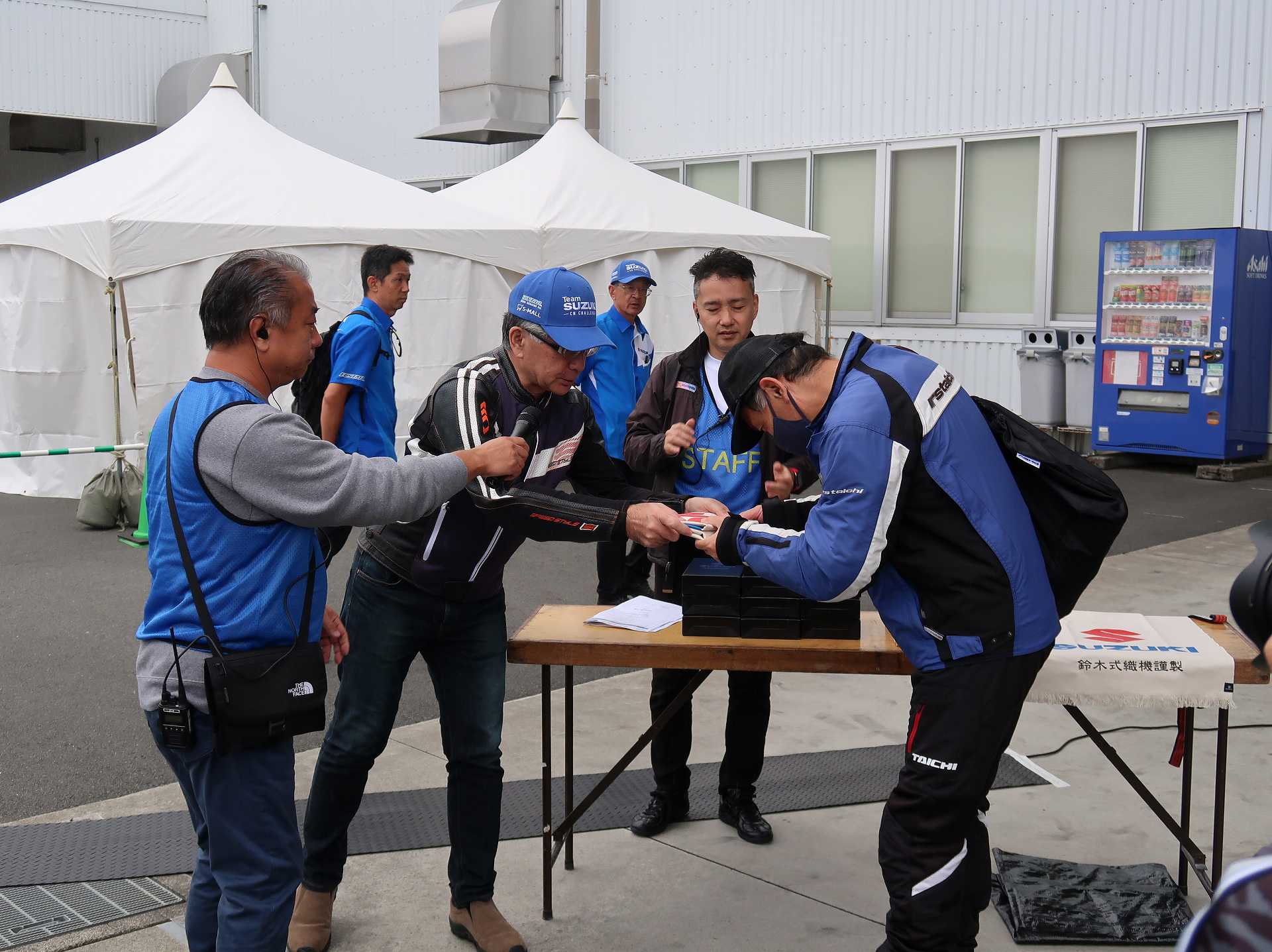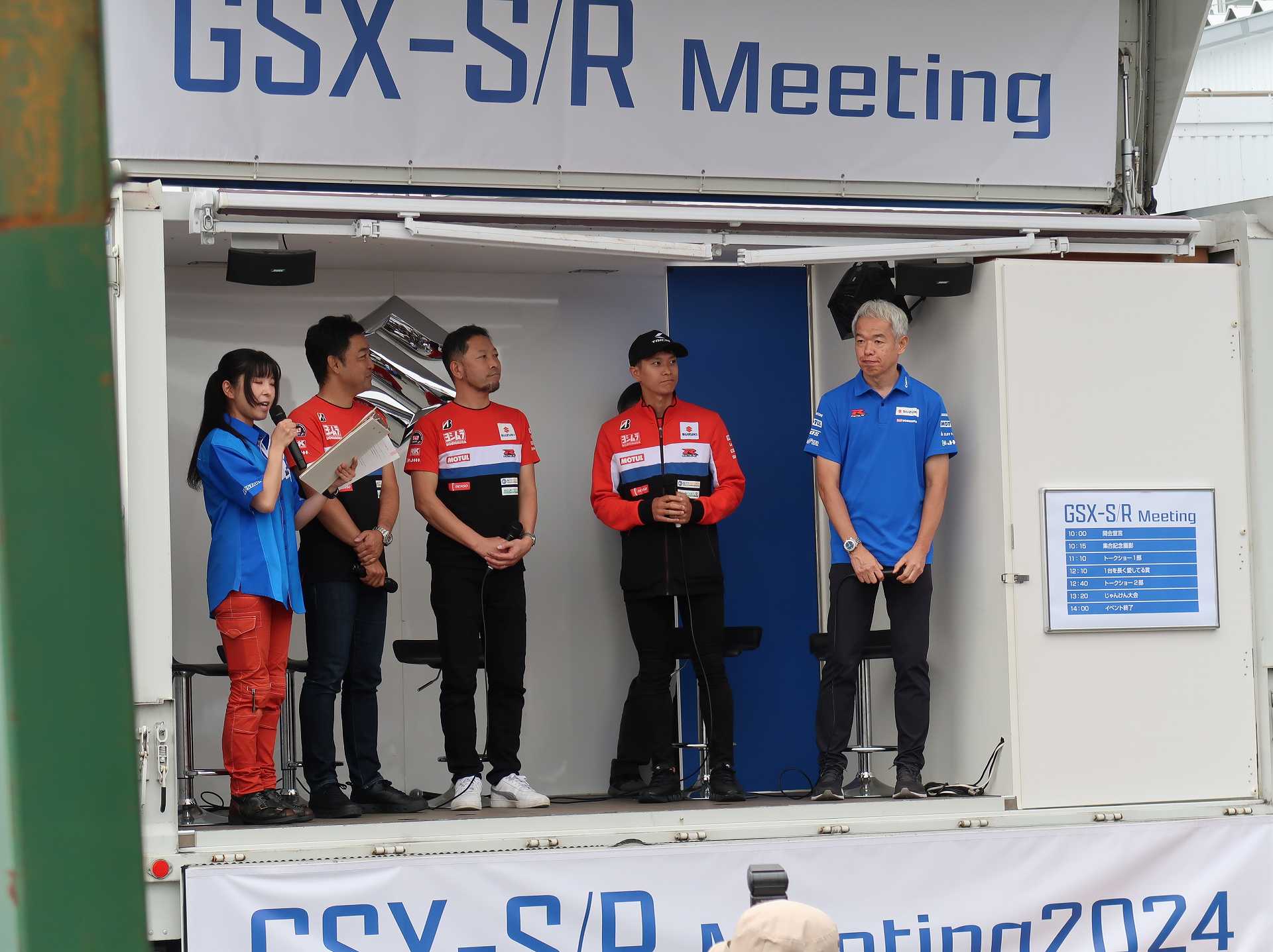 高速乗って、浜松に 前に、2台走ってるなあ、、、GSX-R??って思って、抜いてみたら、GK71F 八風の糸さんの赤白だなあ、、もちろん前を走ってるのは、ひで爺さんのWW 9:26 ってことで、後ろについて、会場に ![]() ![]() 10:04 開会の挨拶 撮影禁止って、サイトに書かれていたのに、まったくそんな気配もなく、皆さん、バシャバシャ撮影されてますね。。。 それなら一眼持ってきたら良かった。。。 駐車場で、色々と撮影したいGSX-Rあったのに。。。 この駐車場、今回のイベントのために、砂利だったところを、夏休みに舗装したそうです ![]() GSX-Rが販売されて40周年との言葉がありました 国内で400が発売されて40周年 その次の年にグローバルで (まあ、400は、海外でも売られてましたが・・・・そのこと、知ってるかは??と社員の一人の方が。。。) ヨシムラのトロフィーを両社長が! ![]() ![]() ![]() ![]() 11:17 ヨシムラのメンバーと、佐原さんのトークショー 24時間は、やっぱり長いそうですね。。。 ![]() ![]() 11:36 CN CHARENGEのトークショー 日本のバイクなので、小さくて、腰が痛くて、予定より早く交代した話とか、生形さんとの体格差とか ひたすらプレッシャーかけられてた話とか、他にも、色々と楽しい話ありました 津田さんがテストしたときに、ブレーキパッドがまったく使い物にならなかったけど かなりきつくいって、2週間で、通常のものと、大差ないところまで使えるようになったと ここには来てないからと、サンスターさんの名前だして、ダメだしの話されてましたね チームの皆が、トップテントライアルの日が佐原さんの還暦の誕生日で、その日に、赤いTシャツを作ってくれて、それをトップテントライアルの時に着る予定だったが出れなくて残念だったと それを今日は一日着てますってことでした ![]() ![]() ![]() 私はやっぱりでかくて、目立つようで、80's Meetingの仲間たちが、たくさん、声をかけていただき。。。 色々とお話させていただきました ![]() 12:15 GSX-S/Rミーティング 一台を長く愛している賞 条件は、自己申告のみ、GSX-Rで、新車から長く乗っている方 もちろん優勝は、我らがGK71B CLUBのCHOKUさんです! GSX-R HBを新車で購入40年間は、一人でした 他、1985の750の方とか、色々と表彰 CHOKUさんに、たくさんの報道陣がかこみで、撮影されてる姿は、むちゃくちゃ受けました そして、表彰者が一堂に並び。。。 う~む、親方たちの土俵入りですかね。。。。 ちなみに、私は、新車からという条件でダメでした 35年なんですけどね~ ![]() ![]() ![]() ![]() ![]() ![]() ![]() chokuさんのHBは、こちら 静岡県在住のchokuさんのGSX400R-C ![]() ![]() chokuさんのコメント(2004/04/05) ご無沙汰しております。2月にGK71B CLUBへのメールをさせていただいた、 choku と申します。 返事を頂いたにもかかわらず、何の連絡もせず失礼いたしました。 GSX-Rの出先での最近の写真が見当たらなかったので、 自宅で撮ってみました。 余りきれいに撮れていませんが、よろしければHPで紹介願います。 現在は、昨年の夏以来ほとんどエンジンをかけていなかった為、 キャブがオーバーフローをおこして、掃除が必要な状態です。 ここ数年はほとんど乗らない上に、自分では洗車位しかしないし、 ドノーマルですので、整備の苦労とかは自分では余りして無いのですが、 だんだんパーツの欠品に悩みだしているところです。 今年はGSX-R誕生20周年ですので、何かお手伝いできることがあれば、 お手伝いさせていただきたいと思います。 今年も渚園には行く予定ですが、皆さんと集まる機会になればと思っています。 いつまで可動状態を維持できるか判りませんが、末永くよろしくお願いします。 ------------------------------------------------------ そうです、初期メンバーのchokuさん 20年前、スズキミーティングでの、GSX-R20周年の時にも参加され、横内さんともお話してます。 2004/07/17(土)-19(月)天竜-袋井 GSX-R 20周年記念 GK71B CLUB MEETING 左端がchokuさん、右端が横内さん ![]() 辻本さんの右側がchokuさん ![]() 色々とブースのほうも見てみます 12:20 ![]() ![]() ![]() MOTULさんのブースで挨拶 ちゃんと、私のことは、皆さん覚えていていただけました NAPS京都八幡店でのMOTULイベントで、皆様に挨拶と、80's Meetingの紹介をさせていただき Mar 30, 2024 GAG125で、NAPS京都八幡店 「MOTUL JACK」に、クリーナーで綺麗にしていただきました! #GAG #NAPS #MOTUL ![]() Mar 30, 2024 HBΓで、自賠責入って、再度NAPSに。MTオイル交換していただきました。 #MOTUL #HB #RG250Γ #GJ21A #NAPS ![]() Mar 31, 2024X 今日はGJ21Bの方のオイル交換。辻本さんシュワンツのサイン入りタペストリーと写真を撮らせていただきました。 #村瀬春香 #密照幸映 #NAPS #MOTUL #GJ21B #ヨシムラ #RG250Γ ![]() ![]() ![]() ![]() Mar 31, 2024 GJ21Bと2024 Ambassadeur de MOTULのお二人との写真を撮らせていただきました。 #村瀬春香 #密照幸映 #NAPS #MOTUL #GJ21B #ヨシムラ #RG250Γ ![]() 鈴鹿8耐で、企画書をお渡しして協賛のお願いを そして、80's Meeting 2024に、協賛いただきました!! みなさん、本