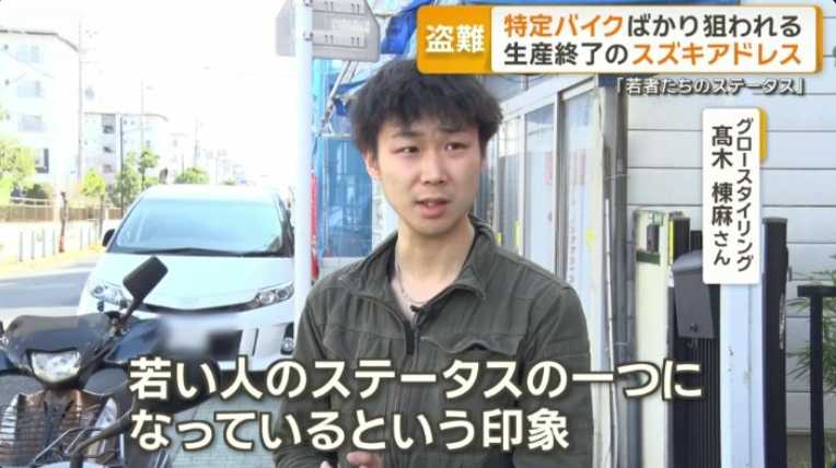 「若い人のステータスの一つになっているという印象。高級車になると輸出などの兼ね合いで(売る目的で)盗むっていう需要が出てくるが、このバイクに関しては盗んで部品を使うのか、そのまま車両を使うのか、そういうようなことだと思う」