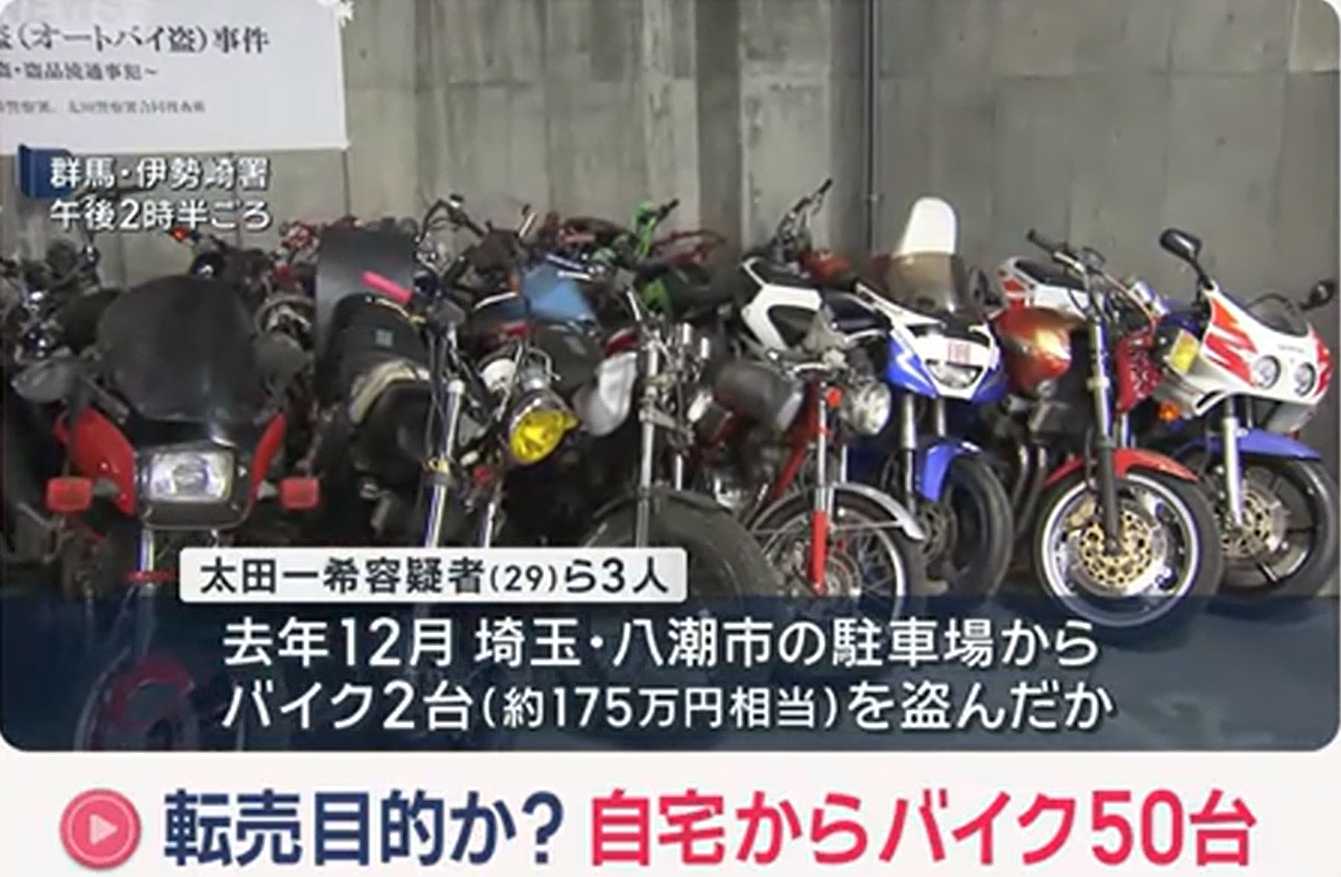 太田容疑者らの自宅からはバイク約50台が見つかっていて、盗難車が含まれている可能性が高いということです。