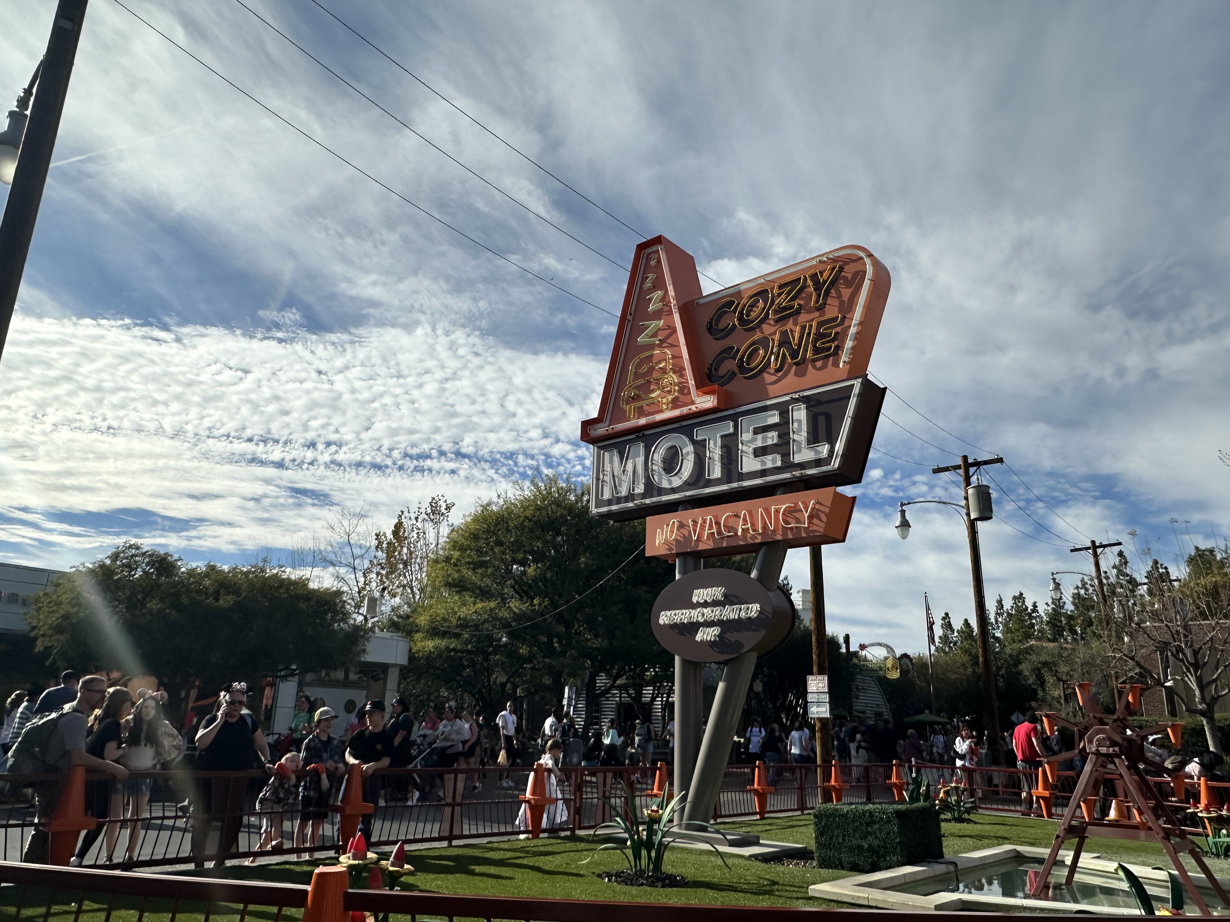 The earl's club という名前のサンドイッチです。 一つを二人で頼んで半分にしていい感じの量です。 なかなかに食べ応えもあり美味しかったです! それではエントリーです。開園前はちょっとした列が。 それでもまったく日本ほどではないです。 目指すはカーズランド! 映画「CARS」の大ファンの私はこの場所が大好きです。 ラジェータースプリングスです。 詳しくは映画をご覧ください。 シンボルのフローのカフェ。 ルイージの車屋さん。グイドがお出迎え。 お土産屋さん。映画の中でも本当にお土産さん。 ルート66の看板。 実際のルート66にも行ってみたいものです。 アメリカのロードトリップとかもしてみたい、、 マックイーンが泊まったモーテル。 と、ここでライトニングマックイーンのグリーティング!! メーターも! グリーティングには子供たちしか並んでいなかった(笑) もちろんアトラクションも! ラジエータースプリングスレーサーズ です! 大人気のアトラクションで、待ち時間は長め。 海外のディズニーランドは結構待ち時間は短いのですが やはり人気のアトラクションとなると180分など、 他のアトラクションは10ー30分くらいで乗れちゃいます。 しかしラジエータースプリングスレーサーズ大好きなので、、 ちなみにシングルライダーもあります。 カーズの世界を堪能しました。 詳細記事はこちらに↓ カリフォルニアディズニー徹底解説 その他の旅行に関する記事はこちらから↓ https://tabi.blog/