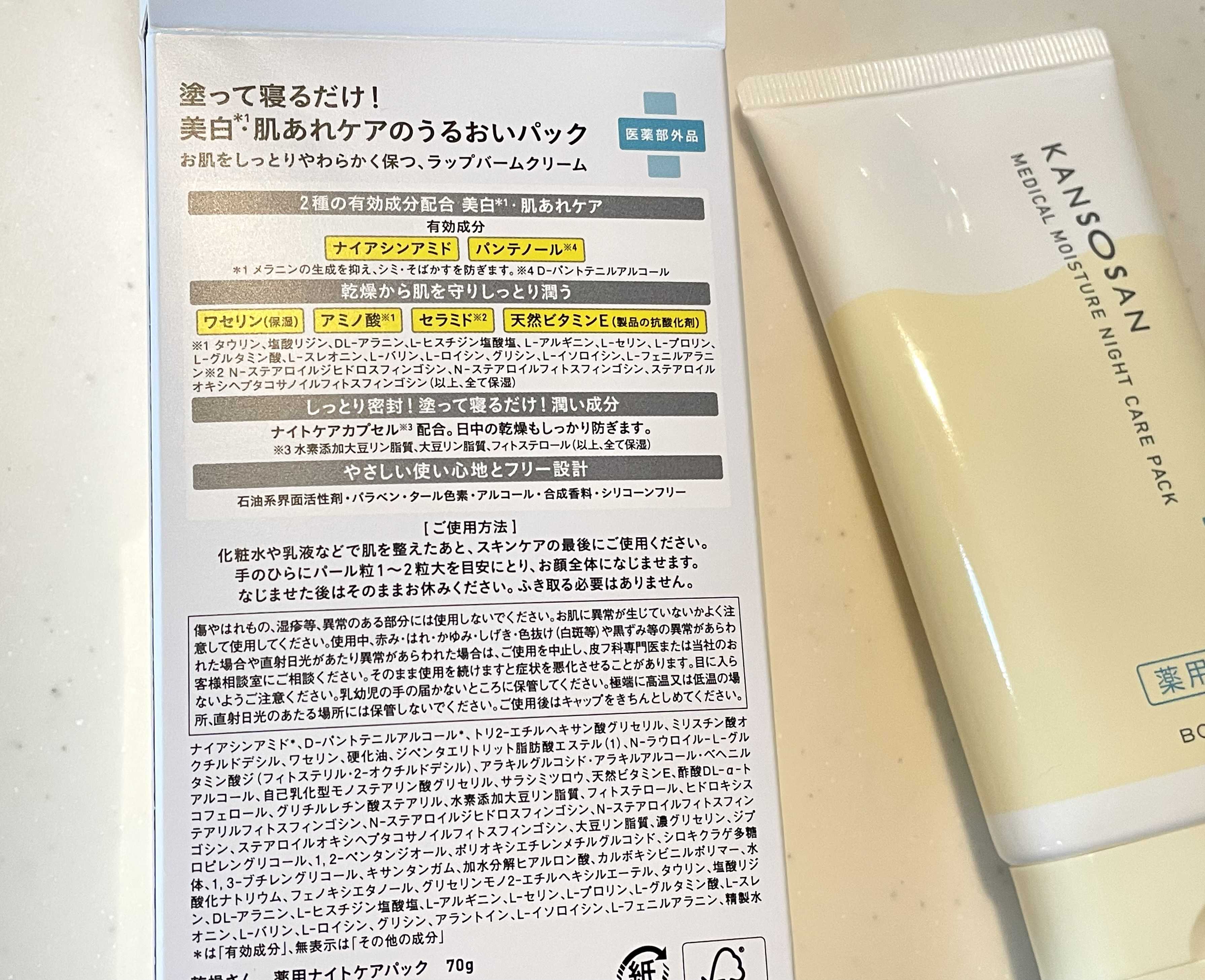 ![]() 乾燥さんの下地とファンデーションが良かったので ナイトケアパックも揃えてみました。 さすが乾燥さんシリーズというだけあって この時期の悩みだった翌朝のカサつきが軽減、 ワセリンなどの保湿成分のおかげで スキンケアが密封されたようにツルンとしています ![]() 先に使い始めたIHADAのパックも使用感が良いのですが IHADAとの大きな違いは「ナイアシンアミド」が配合されていることでしょうか。 テクスチャーはIHADAは柔らかめのジェル、 乾燥さんは少し硬めのバームのようです。 どちらも無香料、 伸ばしてすぐは白くなるけど数分経つと透明になる、 髪の毛が付きにくい、 洗顔後の肌がツルッとする点は似ているように感じます。 ![]() 甲乙つけ難いくらいどちらも使って良かったです(^^) どちらも同じ容量(70g)で 乾燥さんは¥1,760(税込)、 IHADAは¥1,980(税込) お値段的には乾燥さんが少しお得ですね(^^) #楽天ショッピング こちらもポチッとしていただけると大変励みになりますp(^_^)q にほんブログ村 にほんブログ村 お気に入りの記事を「いいね!」で応援しよう