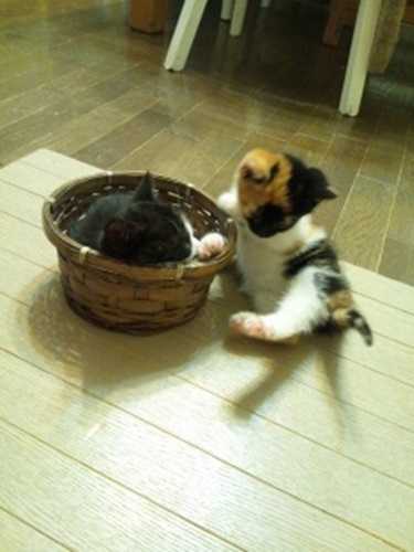 21世紀が始まって、 もう26年も経ったなんて 嘘みたいですね 新年早々で申し訳ありませんが💦 昨年の11月25日に亡くなった、 三毛猫くるみちゃんの一生物語、 ようやく記してあげたいと思います。 当なな猫ほーむでは、成猫の預かりが多くて 子猫を預かっても、大体すぐに 里親さんが決まるので 子猫から死ぬまで、うちの子になって生きた、 という子は比較的まれになります。 そしてくるみちゃんが、 そんな子猫のうちの1匹でした。 ![]() 見てください、この可愛さ・・ ![]() ちっさ ![]() ![]() 三毛でも、お顔の真ん中が真っ黒って 結構レアです ![]() そして、この子たちは兄妹です。 お兄ちゃんは、白黒の葉太。 ![]() この可愛さ・・ なな猫ほーむのPCのHPで ブログバナーに作ったほどです。 ![]() ![]() 13年前だから、まだ若いオヤジと(笑) ![]() 今は亡き、あずきおばちゃんと遊ぶくるみちゃん。 葉太とくるみちゃんは、神戸から来ました。 13年前当時、mixiが結構全盛で、 私もmixiで里親さがしをしていました。 ある方からメッセージをいただき、 神戸の須磨のロープウエイのある公園で 子猫が二匹捨てられてて保護したが、 自分では飼えないので 保護してもらえないか。 若いカップルからのメールで 東京まで連れてきてくれるなら 預かりますとお返事しました。 そして二匹は、新幹線で東京に来ました。 うちで預かった中では、 生後2か月いかない感じ、 苺に次ぐ幼さだったと思います。 ![]() ひかりに世話される二匹。 (ひかりも、千葉に来てから亡くなりました) ![]() わたしのお腹の上で眠る ![]() ![]() ![]() 本当に、他に例を見ないほどの 可愛さだった ![]() 順調に育っていくくるみちゃん ![]() 柄がそっくりで、 あずきと一緒のことが多かったくるみちゃん、 お母さんを思い出すのでしょうか。 ![]() 「ひかりおばちゃーん ![]() 「こら ![]() この頃、ほかにも子猫を たくさん預かってました。 小さいお友達たくさん ![]() オープンキッチンの前に集まる猫たち。 今は亡き、桃おばさんも一緒 ![]() ことさらあずきには甘えていましたね。 サイズだいぶ違うわ ![]() 親子みたいな、あずきとくるみちゃん。 ![]() 2004年から本格的になった なな猫ほーむ🐱保護活動で 最初に保護した子たちが大人になってて、 このあずきほか、 かおるや新之介やひかりや草太たちが たくさんの子猫を育ててくれてました。 子猫たちみんな、親から離されて 保護されて来てますから、 やさしいお兄さんお姉さんに 甘えてましたね。 ![]() ![]() 二匹とも、検査の結果 エイズキャリアであることがわかりました。 もちろんその点は里親募集に書きますので そのこともあってか、 二匹とも里親さんがずっと決まらず、 ほとんど応募さえなく、 結局うちの子になって成長しました。 ![]() ![]() 新之介が世話をしています。 子猫専だった新之介は、 50匹くらい子猫を育てました ![]() そして、最初の保護主の若いカップルとは いろいろあって、 最終的に音信不通になりました とても残念です。 (うちに「遺棄」された子は 何匹かいます ご事情があれば相談してほしいですね。 一旦お預かりした以上、 わたしは無理に返したりは 絶対にしないので) ![]() チャンネルを枕にして 寝てしまうくるみちゃん ![]() ![]() 高い棚の上で寝てます ![]() ![]() かわいいね ![]() この模様は、本当にありそうでない。。 ![]() 草太、かおる、新之介と 往時の黄金メンバーに囲まれて 幸せそうなくるみちゃん。 もうみんな死んでしまった😿 幼くて保護された 葉太とくるみちゃんは、 こんな兄さん姉さんに育てられました。 ![]() 珍しく下から映したくるみちゃん。 ![]() 普段、目が閉じがちに見える子で、 下から映すとお目目ぱっちりです ![]() 仲良し兄妹・・ でも段々、葉太に男子衝動が表れるにつれ💦 くるみちゃんは葉太を嫌うようになります。。 ![]() 右のお団子尻尾はかおるだー (2019に死んだ ![]() 東京でピアノ教室をしていた頃、 人好きの猫たちは 猫好きの生徒さんたちの隣に座り、 応援スタッフをしていました ![]() くるみ「ほら、お姉さんがんばって ![]() 神戸で産まれて、捨てられて、 東京のなな猫ほーむにたどりついた 葉太とくるみちゃん。 葉太もエイズキャリアで口内炎がひどく、 抜歯でがんばっていましたが 2017年10月10日に亡くなりました。 お時間がありましたら、 下記、葉太の一生も読んでやってください。 葉太のものがたり ![]() 葉太が亡くなったあとも、 くるみちゃんは他の猫たちに囲まれ 元気に成長しておとなになりました。 ![]() ![]() みんな箱が大好きだよね ![]() 高輪にいた頃、 マンションの小庭を見るみんな。 ![]() くるみちゃんの右はなずなちゃん、 前にいるのは苺だ ![]() ![]() ![]() ![]() エイズキャリアでしたが、 葉太より容態は悪くなくて、 慢性鼻炎はありましたが おとなになるにつれ 結構太っていきました ![]() 草太とくるみちゃん ![]() かわいくて、太ってて 性格もやさしくて、 本当にいい子でしたね。 ![]() くるみちゃんに甘える真夏